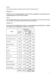 Frage 2: Wie viele dieser Ampeln sind inzwischen auf LED-Technik umgerüstet worden? Antwort zu 2: Derzeit sind 1149 Lichtsignalanlagen mit LED-Technik ausgestattet. Das entspricht einem Ausstattungsgrad von gut 54% aller Anlagen. Frage 3: Wie viele Straßenlaternen gibt es in Berlin (bitte geordnet nach Bezirken)? Mit welcher Energieversorgung bzw. mit welchen Leuchtmitteln(konventionell/LED) sind diese ausgestattet? Antwort zu 3: Die Anzahl der Straßenlaternen in Berlin und die lichttechnische Ausstattung ist, unterteilt nach Bezirken, der nachfolgenden Tabelle zu entnehmen: Straßenlaternen Energieversorgung Bezirke Anzahl Elektro gesamt Gas konventionell LED 16.856 Charlottenburg-Wilmersdorf 22.914 6.058 15.041 1.815 9.176 Friedrichshain-Kreuzberg 10.984 1.808 8.326 850 13.894 Lichtenberg 13.894 0 13.446 448 17.517 Marzahn-Hellersdorf 18.724 1.207 16.389 1.128 20.025 Mitte 23.470 3.445 18.530 1.495 12.214 Neukölln 14.170 1.956 10.118 2.096 22.418 Pankow 22.418 0 21.165 1.253 13.765 Reinickendorf 17.938 4.173 11.481 2.284 15.257 Spandau 16.467 1.210 12.169 3.088 16.751 Steglitz-Zehlendorf 23.514 6.763 16.269 482 13.602 Tempelhof-Schöneberg 17.990 4.388 12.546 1.056 20.904 Treptow-Köpenick 21.395 491 20.034 870 192.379 223.878 31.499 175.514 16.865 2