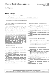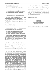 Abgeordnetenhaus Berlin – 17. Wahlperiode Drucksache 17 / 10722 Humboldt-Universität zu Berlin Prof. Seher), in welchem auch die gesellschaftlichen Grundlagen des Rechts thematisiert werden können, zum Wintersemester 2012/13 - Pflichtfachstudium anderen das Modul „Einführung in die Kriminologie“ (Arbeitsbereich Prof. Hoffmann-Holland). • Rechtsgeschichte I (Vorlesung; Prof. Paulus) • Rechtsgeschichte I (Vorlesung; Prof. Schröder) An der Humboldt-Universität zu Berlin wird die • Rechtssoziologie (Vorlesung; Jakob Nolte) bislang von Prof. Baer gehaltene Vorlesung Rechts- soziologie u. a. von Prof. Möllers, Prof. Schröder und Prof. Singer übernommen werden. Wintersemester 2012/13 – Schwerpunktstudium • Staats- und Rechtsphilosophie des 19./20. Berlin, den 23. Juli 2012 Jahrhunderts (Vorlesung; Prof. Tatjana Hörnle) • Juristische Zeitgeschichte (Vorlesung; Prof. Schröder, Vormbaum) In Vertretung • Neueste Rechtsgeschichte (Vorlesung; Prof. Sigrid Klebba Schröder) Senatsverwaltung für Bildung, • Geschichte der Rechtswissenschaft (Prof. Jugend und Wissenschaft Neumann, Prof. Schröder) (Eingang beim Abgeordnetenhaus am 10. August 2012) Sommersemester 2013 – Pflichtfachstudium (Besetzungsplanung noch nicht abgeschlossen) • Rechts- und Staatsphilosophie (Vorlesung) • Juristische Methodenlehre (Vorlesung) • geplant: Introduction to Jewish Law (Vorlesung) Über die für das Sommersemester 2013 anzubietenden Lehrveranstaltungen des Schwerpunktstudiums an der Humboldt-Universität zu Berlin wird erst nach Abschluss der Veranstaltungs- und Besetzungsplanung im Herbst 2012 Auskunft gegeben werden können. 3. Wie wird sichergestellt, dass auch nach dem Wechsel von Prof. Dr. Susanne Baer, LL.M. an das Bundesverfassungsgericht und der Emeritierung von Prof. Dr. Hubert Rottleuthner zum Ende des Sommersemesters 2012 Lehrveranstaltungen zu den philosophischen und gesellschaftlichen Grundlagen des Rechts an beiden Berliner Universitäten weiterhin angeboten werden? Zu 3.: An der Freien Universität Berlin wird die Römische, Deutsche und Europäische Rechtsgeschichte mit entsprechenden Lehrveranstaltungen des Pflichtfach- und des Schwerpunktbereichsstudiums, in deren Rahmen – wie oben zu 1. bereits gesagt – auch die philosophischen und gesellschaftlichen Grundlagen des Rechts in ihrer geschichtlichen Dimension reflektiert werden, durch Prof. Möller und Prof. Czeguhn vertreten. Darüber hinaus ist ein Berufungsverfahren für eine Juniorprofessur für Bürgerliches Recht und ein Grundlagenfach eingeleitet worden. Die Neuberufung von Prof. Seher auf eine strafrechtliche Professur ermöglicht es, die im rechtswissenschaftlichen Curriculum vorgesehenen rechtsphilosophischen Lehrveranstaltungen weiterhin anzubieten; das gilt entsprechend auch für die strafrechtliche Juniorprofessur von Prof. Singelnstein. Der Fachbereich plant überdies die Implementierung zweier neuer Grundlagenmodule, zum einen das Modul „Rechtstheorie“ (Arbeitsbereiche Prof. Bachmann und 3