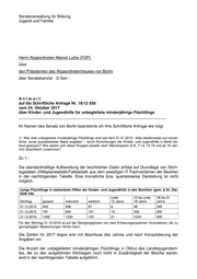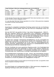 -2- Junge Flüchtlinge in Obhut des Landesjugendamtes (gem. § 42, 42a SGB VIII) unter 12 bis unter 18 bis 21 Stichtag gesamt männlich weiblich 12 Jahre 18 Jahre Jahre 31.12.2014 221 193 28 14 207 0 31.12.2015 2014 1920 94 59 1938 17 31.12.2016 814 771 43 7 788 19 2) Wie viele dieser Personen haben einen Asylantrag gestellt? Sofern dieser beschieden wurde, in welchem quotalen Verhältnis ist diesem stattgegeben worden? 3) In wie vielen dieser Fälle haben Berliner Jugendämter für von Ihnen in Obhut genommene unbegleitete minderjährige Flüchtlinge Asylantrag gestellt? Zu 2. und 3.: Asylanträge für unbegleitete minderjährige Flüchtlinge werden durch den vom Familienge- richt bestallten Vormund gestellt, sofern dies dem Wohl der minderjährigen Person ent- spricht. Seit dem 29.07.2017 gilt gemäß § 42 Abs. 2 des Achten Sozialgesetzbuch - SGB VIII -, dass das Jugendamt während der Inobhutnahme eines unbegleiteten minderjährigen Flüchtlings auch zur unverzüglichen Stellung eines Asylantrags verpflichtet ist, wenn Tat- sachen die Annahme rechtfertigen, dass zum Wohl der minderjährigen Person internatio- naler Schutz im Sinne des § 1 Abs. 1 Nr. 2 des Asylgesetzes benötigt wird. Es bedarf einer vorherigen umfangreichen Einzelfallprüfung, ob eine unverzügliche An- tragstellung die aufenthalts- und asylrechtliche Situation der minderjährigen Person ver- bessert. Dies dient der Sicherstellung der für bzw. wider eine Asylantragstellung spre- chenden Argumente, gegebenenfalls unter Einholung von rechtsbeiständlichem Rat zur Sicherstellung des Wohls der minderjährigen Person. Seit dem Inkrafttreten der neuen gesetzlichen Regelung wurden in der Zuständigkeit des Landesjugendamts Berlin keine Asylanträge im Vorgriff zu einer weiterhin möglichen Ent- scheidung eines Vormunds gestellt. In den jeweiligen Einzelfällen waren die gesetzlichen Voraussetzungen einer Verpflichtung zur sofortigen Asylantragstellung nicht gegeben. Die einzelfallbezogenen Asylanträge von Amts-, Vereins- oder ehrenamtlichen Einzelvor- mündern werden nur vom Bundesamt für Migration und Flüchtlinge als zuständige Behör- de erfasst. Der Senatsverwaltung für Bildung, Jugend und Familie liegen daher keine In- formationen zur Anzahl der gestellten bzw. stattgegebenen Anträge vor. 4) Wie alt ist aktuell der älteste, wie alt der jüngste durch Einrichtungen der Kinder- und Jugendhilfe in Berlin betreute unbegleitete minderjährige Flüchtling? Zu 4.: Der aktuell jüngste vom Landesjugendamt Berlin in Obhut genommene unbegleitete min- derjährige Flüchtling ist sechs Jahre, der älteste 18 Jahre alt.