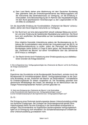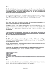 a) Dem Land Berlin stehen eine Abstimmung mit dem Deutschen Bundestag über geänderte Ziele der Entwicklungsmaßnahme des Bebauungsplans und die Instrumente des Denkmalschutzes zur Verfügung, um die Erhaltung si- cherzustellen. Eine Berücksichtigung der im Rahmen des Hauptstadtvertrages mit dem Bund geschlossenen Vereinbarungen zu den Liegenschaften im Be- zirk Mitte ist unerlässlich. Um die dauerhafte Erhaltung der Kunstinstallation „Parlament der Bäume“ sicherzu- stellen, stehen dem Bund folgende Instrumente zur Verfügung: b) Der Bund kann auf eine planungsrechtlich aktuell zulässige Bebauung verzich- ten und einer Änderung der bestehenden Bauleitplanung zustimmen. Der Bund kann sich verpflichten, die Mauerrelikte auf den bundeseigenen Grundstücken zu erhalten. Eine mögliche finanzielle Unterstützung seitens der Bundesregierung zur Er- haltung der Kunstinstallation wäre anhand der Voraussetzungen der §§ 23, 44 Bundeshaushaltsordnung zu prüfen, sofern die Planungen des Deutschen Bundestages (siehe Antwort zu Frage 6) dahin gehen, den Bestandsschutz für das „Parlament der Bäume“ auf seiner Vorhaltefläche über das Jahresende 2018 hinaus zu verlängern. c) Der Bezirk könnte durch Festsetzung einer Erhaltungssatzung aus städtebau- lichen Gründen die Anlage bewahren. 9. Wer ist Eigentümer bzw. Verfügungsberechtigter des „Parlaments der Bäume“ und für die Erhaltung der Anlage verantwortlich? Zu 9.: Eigentümer des Grundstücks ist die Bundesrepublik Deutschland, vertreten durch die Bundesanstalt für Immobilienaufgaben (BImA). Verfügungsberechtigter ist der Deut- sche Bundestag, da das „Parlament der Bäume“ als Reservefläche / Vorhaltefläche für Erweiterungsbauten für diesen vorgesehen ist. Der Bundestag garantiert eine gärtnerische Mindestpflege des Areals, die allerdings an ein Memorandum des da- maligen Parlamentspräsidenten Norbert Lammert gebunden ist. 10. Setzt eine Eintragung des „Parlaments der Bäume“ in die Denkmalliste a) das Einverständnis des Eigentümers bzw. Verfügungsberechtigten voraus? b) einen Schadenersatzanspruch des Eigentümers bzw. Verfügungsberechtigten aus? Zu 10.: Die Eintragung eines Denkmals beziehungsweise dessen Unterschutzstellung erfolgt aus fachlichen Erwägungen. Bei Vorliegen der Denkmaleigenschaft gemäß Denk- malschutzgesetz Berlin hat eine Eintragung in die Denkmalliste ermessensfrei zu erfolgen. Das Einverständnis von Eigentümern beziehungsweise Verfügungsberech- tigten ist zur Eintragung nicht erforderlich. Ein Schadensersatzanspruch entsteht bei einer Unterschutzstellung grundsätzlich nicht. Seite 4 von 5