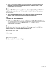 4. Welche Auffassung haben die Mieter und Mieterinnen bzw. die dort wohnenden Mitglieder der betreffenden Wohnungsbaugesellschaft nach Erkenntnissen des Berliner Senats zu einem drohenden Abriss ihrer Wohnungen? Zu 4.: Presseveröffentlichungen war zu entnehmen, dass die dort betroffenen Mieterinnen und Mieter der entsprechenden Wohneinheiten um den Erhalt des Wohnraumes kämpfen wollen. 5. Welche Erkenntnisse liegen dem Senat vor, ob Hertha BSC GmbH KG aA inzwischen das Gespräch mit den Anwohnern und Anwohnerinnen gesucht und geführt hat? Zu 5.: Darüber hat der Senat keine Kenntnis. 6. Wie beurteilt der Berliner Senat Äußerungen von Vertretern von Hertha BSC GmbH KG aA, dass man wegen des Datenschutzes bisher nicht auf die Anwohner und Anwohnerinnen zugegangen ist angesichts der Tatsache, dass Hertha BSC GmbH KG aA in unmittelbarer Nähe zur Sportforumstraße angesiedelt ist? Zu 6.: Der Senat hat keine Kenntnisse zu möglichen Äußerungen, die Hertha BSC den Anwohnerinnen und Anwohnern gegenüber getätigt hat. Berlin, den 04. März 2019 In Vertretung Aleksander Dzembritzki Senatsverwaltung für Inneres und Sport Seite 2 von 2