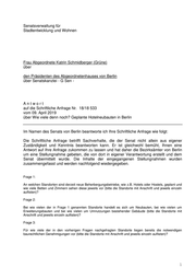 Senatsverwaltung für Stadtentwicklung und Wohnen Frau Abgeordnete Katrin Schmidberger (Grüne) über den Präsidenten des Abgeordnetenhauses von Berlin über Senatskanzlei - G Sen - Antwort auf die Schriftliche Anfrage Nr. 18/18 533 vom 09. April 2019 über Wie viele denn noch? Geplante Hotelneubauten in Berlin Im Namen des Senats von Berlin beantworte ich Ihre Schriftliche Anfrage wie folgt: Die Schriftliche Anfrage betrifft Sachverhalte, die der Senat nicht allein aus eigener Zuständigkeit und Kenntnis beantworten kann. Er ist gleichwohl bemüht, Ihnen eine Antwort auf Ihre Anfrage zukommen zu lassen und hat daher die Bezirksämter von Berlin um eine Stellungnahme gebeten, die von dort in eigener Verantwortung erstellt und dem Senat übermittelt wurde. Die Inhalte der eingegangenen Stellungnahmen wurden zusammengefasst und werden nachfolgend wiedergegeben. Frage 1: An welchen Standorten sind derzeit neue Beherbergungsbetriebe, wie z.B. Hotels oder Hostels, geplant und wie viele Betten und Zimmern sehen diese jeweils vor (bitte die Standorte mit Anschrift und jeweils einzeln auflisten)? Frage 2: Bei wie vielen der in Frage 1 genannten Standorte handelt es sich um Neubauten, bei wie vielen um Erweiterungsbauten und bei wie vielen um Umnutzungen bestehender Gebäude (bitte die Standorte mit Anschrift und jeweils einzeln auflisten)? Frage 3: Für wie viele der in den vorherigen Fragen nachgefragten Standorte liegen bereits die notwendigen baurechtlichen Genehmigungen vor (bitte die Standorte mit Anschrift und jeweils einzeln auflisten)? 1
