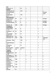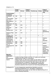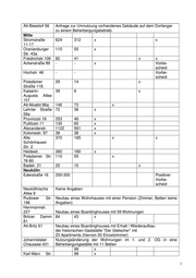 283 Bürgerstr. 44 32 x Pankow Eldenaer Str.33 416 x x Conrad-Blenkle Anfrage Str. 36 Hotel Greifswalder 149 x Str. 6 Reinickendorf Oranienburger 22 22 x Anfrage Straße 107 Ernststr.3a 27 7 x Anfrage Gesellschaftsstr 19 9 x Anfrage . Markstr. 43 280 140 x Anfrage Tempelhof- Schöneberg Nollendorfstr. 28 9 x x 11-12 Potsdamer Str. 52 50 x 141 Tempelhofer 83 37 x Damm 215 Rathausstr.42 45 21 x x Daimlerstr. 97 303 250 x Teilausge- führt Werdauer Weg 182 x x 3 Schätzelbergstr. 78 x 1-3 Potsdamer 91 x Str.184 Rembrandtstr. unbeka unbekan x 20 und 22 nnt nt Treptow- Köpenick Müggelseedam 25 x x m 66 Dörpfeldstr. 37 66 x x Neuhelgoländer 12 x x Weg1 Alexander- 596 x x Meißner Str. 2 Rudower 748 x x Chaussee 2 Rudower 163 x x Chaussee 14 Grünauer Str. 183 x x 182 Michael- 57 x x 4