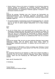 4. Welchen Mehrwert in Bezug auf die Analyse von Gewalttaten und die Entwicklung zielgenauer politischer Strategien zur Bekämpfung von Feindlichkeit gegenüber Obdachlosen als Hasskriminalität besitzt nach Auffassung des Senats eine Kategorie, welche die Tatmotivationen Obdachlosenfeindlichkeit und beispielsweise Feindlichkeit gegenüber Vermögenden in einem gemeinsamen Unterthema vermischt? Zu 4.: Aufgrund der geringen Fallzahlen kann eine Trennung der Sachverhalte von Obdachlosenfeindlichkeit und Feindlichkeit gegenüber Vermögenden manuell vorgenommen werden, wodurch die bedarfsorientierte Erstellung entsprechender Lagebilder möglich ist. 5. Hat die Polizei Straftaten im Zusammenhang mit dem Demonstrationsgeschehen am 1. Mai 2018 im Ortsteil Grunewald dem Hasskriminalität-Unterthema „gesellschaftlicher Status“ zugeordnet? Wenn ja, wie viele mit welchen jeweiligen Deliktsvorwürfen und mit welcher jeweiligen Begründung? Zu 5.: Nein. 6. Hat sich der Berliner Senat in der Innenministerkonferenz bzw. das Berliner LKA in der Arbeitsgruppe „Qualitätskontrolle PMK“ dafür eingesetzt, dass die Begehung von Straftaten aus einer feindlichen Einstellung gegenüber Obdachlosen heraus auf eine solche Weise trennscharf erfasst wird, dass sie im Themenkatalog der Hasskriminalität als statistisch eigenständige Tatmotivation darstellbar und auswertbar ist? Wenn ja, wann mit welchen konkreten Initiativen zu welchen genauen Sitzungen der IMK bzw. der „Qualitätskontrolle PMK“? Wenn nein, aus welchen genauen Gründen nicht? Zu 6.: Aufgrund der wenigen Fälle, die sich aus einer politischen Motivation heraus gegen Obdachlose richteten, sieht der Berliner Senat keinen Anlass, hierfür ein eigenständiges Unterthema einzurichten, im Weiteren wird auf die Antwort zu 4. verwiesen. 7. Ist eine Neufassung der PMK-Statistik im Hinblick auf Straftaten gegen Obdachlose in Zukunft vorgesehen? Wenn ja, wann und in welcher genauen Form? Wenn nein, aus welchen genauen Gründen nicht (bitte begründen)? Zu 7.: Bei mehrjähriger Betrachtung der Statistiken zur PMK waren lediglich Einzelfälle zu verzeichnen, die sich aus einer politischen Motivation heraus gegen Obdachlose richteten. Daher wird eine Neufassung der PMK-Statistik nicht als erforderlich erachtet. Berlin, den 05. November 2018 In Vertretung Torsten Akmann Senatsverwaltung für Inneres und Sport Seite 3 von 3