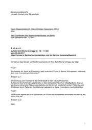 Senatsverwaltung für Umwelt, Verkehr und Klimaschutz Herrn Abgeordneten Dr. Hans-Christian Hausmann (CDU) über den Präsidenten des Abgeordnetenhauses von Berlin über Senatskanzlei - G Sen - Antwort auf die Schriftliche Anfrage Nr. 18 / 11 334 vom 29.05.2017 über Füchse in Berliner Außenbezirken und im Berliner Innenstadtbereich Im Namen des Senats von Berlin beantworte ich Ihre Schriftliche Anfrage wie folgt: Frage 1: Wie bewertet der Senat die Entwicklung, dass zunehmend Füchse in Berliner Wohngebieten mittlerweile auch in der Innenstadt gesichtet werden? Antwort zu 1: Die Sichtung von Füchsen in der Innenstadt ist kein neues Phänomen. Auf Grund des fehlenden Jagddrucks in den befriedeten Bezirken (Stadtgebiet), des zur Verfügung stehenden Nahrungsangebots und der immer wiederkehrenden Fütterung von Wildtieren durch Teile der Bevölkerung insgesamt ist diese Entwicklung nachvollziehbar. Frage 2: Vollzieht oder bestrebt der Senat Maßnahmen, um Füchse aus Wohngebieten fernzuhalten und wenn ja, wie sehen diese aus? Antwort zu 2: Nein. 1