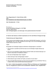 Drucksache 18 / 17 598 Schriftliche Anfrage 18. Wahlperiode Schriftliche Anfrage der Abgeordneten Dr. Kristin Brinker (AfD) vom 22. Januar 2019 (Eingang beim Abgeordnetenhaus am 23. Januar 2019) zum Thema: Auftragsvergaben und Zahlungen ohne parlamentarische Kontrolle? und Antwort vom 04. Februar 2019 (Eingang beim Abgeordnetenhaus am 07. Feb. 2019) Die Drucksachen des Abgeordnetenhauses sind bei der Kulturbuch-Verlag GmbH zu beziehen. Hausanschrift: Sprosserweg 3, 12351 Berlin-Buckow · Postanschrift: Postfach 47 04 49, 12313 Berlin, Telefon: 6 61 84 84; Telefax: 6 61 78 28.