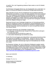 Senatsverwaltung für Wirtschaft, Energie und Betriebe Frau Abgeordnete Dr. Kristin Brinker (AfD) über den Präsidenten des Abgeordnetenhauses von Berlin über Senatskanzlei - G Sen - Antwort auf die Schriftliche Anfrage Nr. 18/17598 vom 22. Januar 2019 über Auftragsvergaben und Zahlungen ohne parlamentarische Kontrolle? ------------------------------------------------------------------------------------------------------------------ Im Namen des Senats von Berlin beantworte ich Ihre Schriftliche Anfrage wie folgt: Vorbemerkung der Abgeordneten: In Ihrer Antwort auf die Schriftliche Anfrage „Was hat das „HOWOGE-BSO-Gutachten“ von Prof. Be- ckers gekostet?“ (Drs. 18/17166)1 erläuterten Sie unter Frage 2 und 3 von der freihändigen Auftrags- vergabe Gebrauch gemacht zu haben. Fragen: Wie gestalten sich freihändige Vergaben bei öffentlicher Auftragsvergabe im Land Berlin? 1. Wie oft wurde im Land Berlin seit 2016 bis heute von der freihändigen Vergabe Gebrauch ge- macht? 2. Wer hat von der freihändigen Vergabe Gebrauch gemacht? (Bitte nach Senatsverwaltungen und Bezirken unterscheiden und tabellarisch auflisten.) 3. Wer waren die Begünstigten dieser Vergaben? 4. Welche Zahlungen haben die Begünstigten erhalten? 5. Welche Bezeichnungen erhielten die Projekte und welcher Art waren diese? 6. Gab es finanzielle Überschreitungen, die sich erst bei der Endabrechnung verwirklichten? Wenn ja, in welcher Höhe und wie wurde die Überschreitung begründet? Zu 1. bis 6.: Außer der gesetzlich normierten Pflicht zur Erhebung von Vergabedaten nach EU-Vergaberecht werden keine landesweiten Statistiken über Vergabeverfah- 1 https://kleineanfragen.de/berlin/18/17166-was-hat-das-howoge-bso-gutachten-von-prof-beckers-gekostet