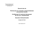 Sekretariat der Ständigen Konferenz der Kultusminister der Länder in der Bundesrepublik Deutschland IVC DS 1932-5(15)5 Übersicht über die Pflichtstunden der Lehrkräfte an allgemeinbildenden und beruflichen Schulen Ermäßigungen für bestimmte Altersgruppen der Voll- bzw. Teilzeitlehrkräfte Besondere Arbeitszeitmodelle Schuljahr 2017/2018 Stand: September 2017