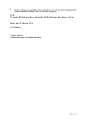 8. Wurden in Bezug auf angebliche Aktenmanipulationen im Fall des Breitscheidplatzattentats Disziplinarverfahren eingeleitet? Wenn ja, wie ist der Sachstand? Zu 8.: Es wurden Disziplinarverfahren eingeleitet. Die Ermittlungen dazu dauern noch an. Berlin, den 16. Oktober 2018 In Vertretung Torsten Akmann Senatsverwaltung für Inneres und Sport Seite 4 von 4