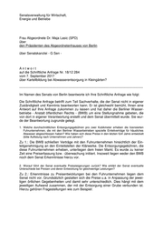 Senatsverwaltung für Wirtschaft, Energie und Betriebe Frau Abgeordnete Dr. Maja Lasic (SPD) über den Präsidenten des Abgeordnetenhauses von Berlin über Senatskanzlei - G Sen - Antwort auf die Schriftliche Anfrage Nr. 18/12 284 vom 7. September 2017 über Kartellbildung bei Abwasserentsorgung in Kleingärten? ----------------------------------------------------------------------------------------------------------------- Im Namen des Senats von Berlin beantworte ich Ihre Schriftliche Anfrage wie folgt: Die Schriftliche Anfrage betrifft zum Teil Sachverhalte, die der Senat nicht in eigener Zuständigkeit und Kenntnis beantworten kann. Er ist gleichwohl bemüht, Ihnen eine Antwort auf Ihre Anfrage zukommen zu lassen und hat daher die Berliner Wasser- betriebe - Anstalt öffentlichen Rechts - (BWB) um eine Stellungnahme gebeten, die von dort in eigener Verantwortung erstellt und dem Senat übermittelt wurde. Sie wur- de der Beantwortung zugrunde gelegt. 1. Welche durchschnittlichen Entsorgungsgebühren pro zwei Kubikmeter erheben die lizensierten Fuhrunternehmen, die mit den Berliner Wasserbetrieben spezielle Einleitverträge für häusliches Abwasser abgeschlossen haben? Wie haben sich diese Preise in den letzten fünf Jahre entwickelt (bitte Auflistung nach Unternehmen und Jahren)? Zu 1.: Die BWB schließen Verträge mit den Fuhrunternehmen hinsichtlich der Ein- leitgenehmigung an den Einleitstellen der Klärwerke. Die Entsorgungsgebühren, die diese Fuhrunternehmen erheben, unterliegen dem freien Markt. Es wurde zu keiner Zeit eine Preiserfassung bzw. -überwachung initiiert. Insoweit liegen weder den BWB noch dem Senat Erkenntnisse hierzu vor. 2. Worauf führt der Senat eventuelle Preissteigerungen zurück? Wie erklärt der Senat eventuelle Unterschiede bei Preisen und deren Entwicklung für gleichwertige Leistungen? Zu 2.: Erkenntnisse zu Preisentwicklungen bei den Fuhrunternehmen liegen dem Senat nicht vor. Grundsätzlich gestalten sich die Preise u.a. in Anpassung der jewei- ligen örtlichen Gegebenheiten und damit sehr unterschiedlich. Dies hängt mit dem jeweiligen Aufwand zusammen, der mit der Entsorgung einer Grube verbunden ist. Hierzu gehören Fragestellungen wie zum Beispiel: