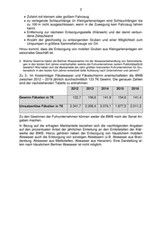 2 Zufahrt mit kleinem oder großem Fahrzeug zu verlegende Schlauchlänge (in Kleingartenanlagen sind Schlauchlängen bis zu 100 m nicht ausgeschlossen, wenn in die Zuwegung kein Fahrzeug fahren kann) Entfernung zur nächsten Entsorgungsstelle (Klärwerk) und der damit verbun- dene Zeitaufwand Anzahl der gleichzeitig zu entsorgenden Gruben und einer Möglichkeit zum Umpumpen in größere Sammelfahrzeuge vor Ort Hinzu kommt, dass die Entsorgung von mobilen Gruben aus Kleingartenanlagen ein saisonales Geschäft ist. 3. Welche Gewinne haben die Berliner Wasserwerke mit der Abwasserbehandlung von Sammelanla- gen in den letzten fünf Jahren erwirtschaftet, welche die Fuhrunternehmen (sofern Publizitätspflicht besteht)? Wie haben sich die Marktanteile der zehn größten lizenzierten Fuhrunternehmen für Gru- benabfuhr in den letzten fünf Jahren entwickelt (bitte Auflistung nach Unternehmen und Jahren)? Zu 3.: Im Kostenträger Fäkalwasser und Fäkalschlamm erwirtschafteten die BWB zwischen 2012 – 2016 jährlich durchschnittlich 133 T€ Gewinn. Die genauen Zahlen sind der nachstehenden Tabelle zu entnehmen: 2012 2013 2014 2015 2016 Gewinn Fäkalien in T€ 122,7 106,6 141,9 154,6 141,4 Umsatzerlöse Fäkalien in T€ 2.341,7 2.206,4 2.074,1 1.877,5 2.011,3 Zu den Gewinnen der Fuhrunternehmen können weder die BWB noch der Senat An- gaben machen. In Bezug auf die erfragten Marktanteile beziehen sich die nachfolgenden Angaben auf den prozentualen Anteil der jährlichen Einleitung an den Einleitstellen der Klär- werke der BWB. Hierzu gehören neben der Entsorgung von häuslichem mobilem Abwasser auch die Entsorgung von sonstigen Abwässern (z.B. Abwasser aus Bran- denburg, Abwasser aus Miettoiletten, Abwasser aus Havarien). Eine Darstellung al- lein nach häuslichem Berliner Abwasser ist nicht möglich.