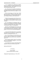 Drucksache 18 / 10 527 Schriftliche Anfrage 18. Wahlperiode Schriftliche Anfrage des Abgeordneten Thorsten Weiß (AfD) vom 23. Februar 2017 (Eingang beim Abgeordnetenhaus am 23. Februar 2017) und Antwort Berliner Brandschutzmängel Im Namen des Senats von Berlin beantworte ich Ihre Direktion West- Bezirke: Schriftliche Anfrage wie folgt: Mitte: 1 Hauptsachbearbeiterin/ Hauptsachbearbeiter, 1 Sachbearbeiterin/ Sachbearbeiter Laut eines Zeitungsartikels der Berliner Morgenpost Tiergarten/ Wedding: 1 Hauptsachbearbeiterin/ Haupt- vom 11.02.2017 gibt es erhebliche Probleme mit dem sachbearbeiter, 1 Sachbearbeiterin/ Sachbearbeiter vorbeugenden Brandschutz in Berlin. Unangekündigte Charlottenburg/ Wilmersdorf: 1 Hauptsachbearbeiterin/ Besuche wie etwa bei den Hygienekontrollen im Gaststät- Hauptsachbearbeiter, 3 Sachbearbeiterinnen/ Sachbearbei- tenbereich finden praktisch nicht statt. In den zuständigen ter Bauaufsichtsämtern und der Feuerwehr fehlen dafür of- Spandau: 1 Hauptsachbearbeiterin/ Hauptsachbearbeiter, fenbar die Mitarbeiter. 2 Sachbearbeiterinnen/ Sachbearbeiter Steglitz/ Zehlendorf: 1 Hauptsachbearbeiterin/ Haupt- 1. Wie haben sich die Zahlen der Anstellungen bei der sachbearbeiter, 1 Sachbearbeiterin/ Sachbearbeiter Berliner Berufsfeuerwehr im Bereich vorbeugender Brand- und Gefahrenschutz seit 2014 (Antritt Senat Mül- ler I) entwickelt? Bitte aufschlüsseln nach Bezirken, Mit- 2. Wie haben sich die Zahlen der zuständigen Mitar- arbeiterzahlen und Jahren? beiter der Bauaufsichtsämter für den Bereich der Einhal- tung der Brandschutzvorschriften seit 2014 entwickelt? Zu 1.: In den Direktionen der Berliner Feuerwehr im Bitte aufschlüsseln nach Bezirken, Mitarbeiterzahlen und Fachbereich Vorbeugender Brandschutz ist die Anzahl Jahren. der Haupt- und Sachbearbeiter- Stellen für die jeweiligen Bezirke seit 2014 unverändert wie folgt: Zu 2.: Es liegen dem Senat folgende Informationen vor: Direktion Nord - Bezirke: Lichtenberg und Marzahn- Hellersdorf: 1 Hauptsachbear- Bezirk Mitte: beiterin/ Hauptsachbearbeiter, 1 Sachbearbeiterin/ Sach- Für die Brandsicherheitsschauen sind seit 2014 3 Mitar- bearbeiter beiterinnen/ Mitarbeiterverantwortlich. Pankow: 1 Hauptsachbearbeiterin/ Hauptsachbearbeiter, 1 Sachbearbeiterin/ Sachbearbeiter Bezirk Reinickendorf: Reinickendorf: 1 Hauptsachbearbeiterin/ Hauptsachbear- Für die Brandsicherheitsschauen ist 1 Mitarbeiterin/ Mit- beiter, 1 Sachbearbeiterin/ Sachbearbeiter arbeiter verantwortlich. Direktion Süd - Bezirke: Bezirk Charlottenburg- Wilmersdorf: Friedrichshain- Kreuzberg: 1 Hauptsachbearbeiterin/ Für die Brandsicherheitsschauen sind 2,5 Mitarbeiterin- Hauptsachbearbeiter, 2 Sachbearbeiterinnen/ Sachbearbei- nen/ Mitarbeiter verantwortlich. ter Neukölln: 1 Hauptsachbearbeiterin/ Hauptsachbearbeiter, Daten aus den anderen Bezirken liegen dem Senat 1 Sachbearbeiterin/ Sachbearbeiter nicht vor. Tempelhof- Schöneberg: 1 Hauptsachbearbeiterin/ Haupt- sachbearbeiter, 2 Sachbearbeiterinnen/ Sachbearbeiter Treptow- Köpenick: 1 Hauptsachbearbeiterin/ Hauptsach- bearbeiter, 2 Sachbearbeiterinnen/ Sachbearbeiter Die Drucksachen des Abgeordnetenhauses sind bei der Kulturbuch-Verlag GmbH zu beziehen. Hausanschrift: Sprosserweg 3, 12351 Berlin-Buckow · Postanschrift: Postfach 47 04 49, 12313 Berlin, Telefon: 6 61 84 84; Telefax: 6 61 78 28.