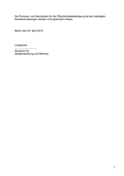 Die Personal- und Sachkosten für die Öffentlichkeitsbeteiligung bei den beteiligten Senatsverwaltungen werden nicht gesondert erfasst. Berlin, den 25. April 2019 Lompscher ................................ Senatorin für Stadtentwicklung und Wohnen 4