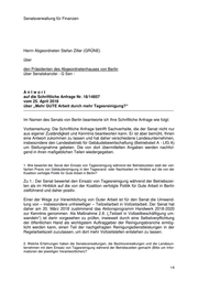 Drucksache 18 / 14 857 Schriftliche Anfrage 18. Wahlperiode Schriftliche Anfrage des Abgeordneten Stefan Ziller (GRÜNE) vom 25. April 2018 (Eingang beim Abgeordnetenhaus am 27. April 2018) zum Thema: Mehr GUTE Arbeit durch mehr Tagesreinigung? und Antwort vom 11. Mai 2018 (Eingang beim Abgeordnetenhaus am 15. Mai 2018) Die Drucksachen des Abgeordnetenhauses sind bei der Kulturbuch-Verlag GmbH zu beziehen. Hausanschrift: Sprosserweg 3, 12351 Berlin-Buckow · Postanschrift: Postfach 47 04 49, 12313 Berlin, Telefon: 6 61 84 84; Telefax: 6 61 78 28.