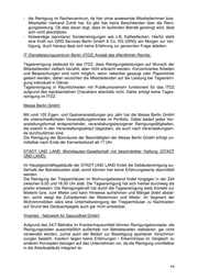 - der Wiederherstellung von Wegesicherheiten in hochfrequenten Bereichen - dem Aufrechterhalten des positiven Gesamteindruckes im Vorstandsbereich und Kundenzentrum - dem konformen Betrieb des Betriebsrestaurants „Spreeperle“ Alle anderen Reinigungsdienstleistungen sind Regeldienstleistungen im Rahmen der Unterhaltsreinigung. Diese Leistungen werden je nach den betrieblichen Abläufen auf den Standorten auch während des Tages (noch während der Betriebszeit, z.T. ab 14.00) zu sehr unterschiedlichen Zeiten erbracht. Diese sind im Regelfall bis 21.00 Uhr abgeschlossen. In Einzelfällen (z.B. Veranstaltungen, Bauarbeiten) kann Nachtarbeit bzw. Wochen- endarbeit (diese z.B. bei Pflegearbeiten, die eine umfängliche Belüftung oder Ein- wirk- bzw. Trocknungszeit erfordern) anfallen. degewo AG: Grundsätzlich werden bei der degewo AG keine Nachtreinigungen durchgeführt. Die degewo AG reinigt Büros in der Tagesrandzeit (ab 5.00 Uhr und bis 21.30 Uhr). Vor- teil hierbei ist, dass der Büro-Betrieb nicht gestört wird. Im Bereich der Treppenhausreinigung sind Tagesrandzeiten aufgrund des Ge- räuschpegels nicht umsetzbar. Hier reinigt die degewo AG zu normalen Tageszeiten ab 7.00 Uhr. Vorteil hierbei ist die direkte Kommunikation zu dem Reiniger und die Vereinbarkeit von Beruf und Familie (Familienfreundlichkeit). GESOBAU AG: Die Tagesreinigung während der Betriebszeit wird für die Verwaltungsräume in der GESOBAU AG nicht favorisiert, da dies zu erheblichen Beeinträchtigungen im kun- denorientierten Service und beim störungsfreien Arbeiten der Mitarbeiterinnen und Mitarbeiter führt. Grundsätzlich können Kunden immer das Gespräch mit z. B. den Kundenbetreuerinnen bzw. Kundenbetreuern suchen, da es keine festen Sprechzei- ten mehr gibt. Die Reinigung der Treppenhäuser und Hauseingänge im Bestand sowie des Woh- numfeldes erfolgt hingegen grundsätzlich am Tage. Gewobag Wohnungsbau-Aktiengesellschaft Berlin: Die Reinigung der Büroräume findet wochentags in der Zeit von 17 bis 21 Uhr statt. Eine Änderung dieser Zeiten wird nicht beabsichtigt, da sich diese Zeiten für alle Be- teiligten als praktikabel erwiesen haben. Grün Berlin Gesellschaft mit beschränkter Haftung: Die Gesellschaft hat keine Erfahrung mit Tagesreinigung während des Bürobetrie- bes. Investitionsbank Berlin (IBB) Anstalt des öffentlichen Rechts: Die IBB hat grundsätzlich keine Erfahrungen mit dem Einsatz von Tagesreinigungen während der Betriebszeiten und lässt in der Regel am späten Nachmittag / Abend reinigen. Zu diesen Tageszeiten sind die Arbeitsplätze überwiegend nicht mehr be- setzt und können einfacher / schneller gereinigt werden. Ausnahmen hiervon bilden 3/6