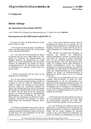 Drucksache 17 / 11 083 Kleine Anfrage 17. Wahlperiode Kleine Anfrage des Abgeordneten Özcan Mutlu (GRÜNE) vom 15. Oktober 2012 (Eingang beim Abgeordnetenhaus am 17. Oktober 2012) und Antwort Konsequenzen aus dem IQB-Ländervergleich 2011 (1) Im Namen des Senats von Berlin beantworte ich Ihre Zu 3.: Auch in diesen Bereichen teilt der Senat die Kleine Anfrage wie folgt: Einschätzung der Autoren des o.g. Berichts, dass ins- besondere in den Stadtstaaten bzw. Großstädten eine enge 1. Wie bewertet der Senat die jüngst vorgestellten Er- Kopplung zwischen der sozialen Herkunft und den er- gebnisse des IQB-Ländervergleichs 2011, bei dem Berlin reichten Kompetenzen der Schülerinnen und Schüler be- mit am schlechtesten abschneidet? steht. Nach Abschluss des bundesweiten Programms zur Zu 1.: Der Senat teilt die Einschätzung der Autoren Steigerung der Effizienz des mathematisch- des Berichts über den ersten Ländervergleich zur Über- naturwissenschaftlichen Unterrichts in Schulen führt das prüfung des Erreichens der Bildungsstandards der Land Berlin das Programm an einigen Grundschulen Ständigen Konferenz der Kultusminister der Länder weiter. Die dort erarbeiteten Materialien und Fortbil- (KMK) in der vierten Jahrgangsstufe, nach der deutliche dungsveranstaltungen stehen auch allen anderen Grund- Nachteile für Schülerinnen und Schüler mit Zuwan- schulen zur Verfügung. Hierzu zählen Broschüren zu derungshintergrund bzw. für Schülerinnen und Schüler aktuellen Unterrichtsthemen ebenso wie Aufgaben- aus Elternhäusern mit niedrigem sozialem Status fest- sammlungen zur Kompetenzorientierung. Das Institut für gestellt werden. Schulqualität der Länder Berlin und Brandenburg richtet zudem eine Aufgabendatenbank ein, in der Lehrkräfte Aufgaben des Instituts zur Qualitätsentwicklung im 2. Welche Konsequenzen zieht der Senat aus den Bildungswesen abrufen können, um sie im Unterricht Ergebnissen der Untersuchung? einzusetzen. Im Anschluss an das KMK-Projekt ProLesen ist das Zu 2.: Es gilt sowohl den Anteil der Schülerinnen und Vorhaben ProLesen-Transfer in Berlin als Schul- Schüler, die schwache Leistungen erbringen, deutlich zu begleitungsprojekt u.a. mit den Schwerpunkten Lese- verringern als auch den Anteil der Schülerinnen und motivation und Individualisierung begonnen worden. Die Schüler zu steigern, die Leistungen im oberen Kompe- Qualifizierung von Lehrkräften, die Durchführung von tenzniveau zeigen. Die verschiedenen Methoden zur Fachtagungen und die Erstellung von Handreichungen Sprach- und Leseförderung müssen auf ihre Wirksamkeit u.a. zur Leseförderung, zur Erarbeitung eines Grundwort- hin überprüft und weiterentwickelt werden. Dazu bereiten schatzes und zu Lesepartnerschaften sind seit 2011 Be- die Länder mit dem Bund derzeit eine gemeinsame standteile des Programms. Initiative zur Weiterentwicklung der Sprachförderung, Sprachdiagnostik und Leseförderung vor. Das Land Berlin wird seine Anstrengungen im Bereich der Lehrer- 4. Wie bewertet der Senat den Umstand, dass mehr als fortbildung insbesondere mit Angeboten zur Binnen- 20 % der SchülerInnen im Bereich Lesen nicht einmal differenzierung und individuellen Förderung intensi- den Mindeststandard entsprechen und welche Maß- vieren. nahmen will der Senat ergreifen, um dies zu verbessern? Zu 4.: Die Bewertung des Ergebnisses steht im Ein- 3. Die Berliner Grundschüler/-innen haben in den Be- klang mit der o.g. Einschätzung zu den Auswirkungen des reichen Lesen und Mathematik Ergebnisse erreicht, die Migrationshintergrunds der getesteten Schülerinnen und signifikant unterhalb des Mittelwerts liegen. Wie bewertet Schüler und zur sozialen Kopplung der erbrachten der Senat dieses und welche Maßnahmen will der Senat Leistung an die soziale Herkunft der Schülerinnen und ergreifen, um dies zu verbessern? Schüler. Im Rahmen des Qualitätspakets für Kitas und Die Drucksachen des Abgeordnetenhauses sind bei der Kulturbuch-Verlag GmbH zu beziehen. Hausanschrift: Sprosserweg 3, 12351 Berlin-Buckow · Postanschrift: Postfach 47 04 49, 12313 Berlin, Telefon: 6 61 84 84; Telefax: 6 61 78 28.