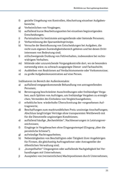 Richtlinie zur Korruptionsprävention f) g) h) i) j) k) l) m) n) o) gezielte Umgehung von Kontrollen, Abschottung einzelner Aufgaben- bereiche; Verheimlichen von Vorgängen; auffallend kurze Bearbeitungszeiten bei einzelnen begünstigenden Entscheidungen; Parteinahme für bestimmte antragstellende oder bietende Personen; Verharmlosung des Sparsamkeitsprinzips; Versuche der Beeinflussung von Entscheidungen bei Aufgaben, die nicht zum eigenen Zuständigkeitsbereich gehören und bei denen Dritt- interessen von Bedeutung sind; stillschweigende Duldung von Fehlverhalten, insbesondere bei rechts- widrigem Verhalten; fehlende oder unzureichende Vorgangskontrolle dort, wo sie besonders notwendig wäre; zu schwach ausgeprägte Dienst- und Fachaufsicht; Ausbleiben von Reaktionen auf Verdachtsmomente oder Vorkommnisse; zu große Aufgabenkonzentration auf eine Person. Indikatoren im Bereich der Außenkontakte: a) auffallend entgegenkommende Behandlung von antragstellenden Personen; b) Bevorzugung beschränkter Ausschreibungen oder freihändiger Verga- ben; auch Splitten von Aufträgen, um freihändige Vergaben zu ermögli- chen; Vermeiden des Einholens von Vergleichsangeboten; c) erhebliche bzw. wiederholte Überschreitung der vorgesehenen Auf- tragswerte; d) Beschaffungen zum marktunüblichen Preis; unsinnige Anschaffungen; Abschluss langfristiger Verträge ohne transparenten Wettbewerb mit für die Dienststelle ungünstigen Konditionen; e) auffallend häufige „Rechenfehler“, Nachbesserungen in Leistungsver- zeichnissen; f) Eingänge in Vergabesachen ohne Eingangsstempel (Eingang „über die persönliche Schiene“); g) aufwändige Nachtragsarbeiten; h) Nebentätigkeiten von Beschäftigten oder Tätigkeit ihrer Angehörigen für Firmen, die gleichzeitig Auftragnehmer oder Antragsteller der öffentlichen Verwaltung sind; i) „kumpelhafter“ Umgangston oder auffallende Nachgiebigkeit bei Ver- handlungen mit Unternehmen; j) Ausspielen von (vermeintlichen) Machtpositionen durch Unternehmen; 25