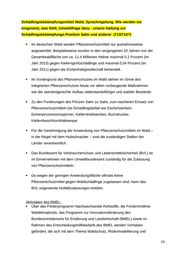 Schädlingsbekämpfungsmittel Wald, Sprachregelung. Wie werden sie eingesetzt, was fehlt, Umweltfrage dazu - unsere Haltung zur Schädlingsbekämpfungs-Position Salm und anderer (713/714?) Im deutschen Wald werden Pflanzenschutzmittel nur ausnahmsweise angewendet. Beispielsweise wurden in den vergangenen 10 Jahren von der Gesamtwaldfläche von ca. 11,4 Millionen Hektar maximal 0,1 Prozent (im Jahr 2013) gegen Kieferngroßschädlinge und maximal 0,04 Prozent (im Jahr 2011) gegen die Eichenfraßgesellschaft behandelt. Im Vordergrund des Pflanzenschutzes im Wald stehen im Sinne des integrierten Pflanzenschutzes heute vor allem vorbeugende Maßnahmen wie der standortgerechte Aufbau widerstandsfähiger und stabiler Bestände Zu den Forderungen des Prinzen Salm zu Salm, zum rascheren Einsatz von Pflanzenschutzmitteln bei Schädlingsbefall wie Eschensterben, Eichenprozessionsspinner, Kieferntriebsterben, Buchdrucker, Kiefernbuschhornblattwespe: Für die Genehmigung der Anwendung von Pflanzenschutzmitteln im Wald – in der Regel mit dem Hubschrauber – sind die zuständigen Stellen der Länder verantwortlich. Das Bundesamt für Verbraucherschutz und Lebensmittelsicherheit (BVL) ist im Einvernehmen mit dem Umweltbundesamt zuständig für die Zulassung von Pflanzenschutzmitteln. Da wegen der geringen Anwendungsfläche oftmals keine Pflanzenschutzmittel gegen Waldschädlinge zugelassen sind, kann das BVL sogenannte Notfallzulassungen erteilen. Aktivitäten des BMEL: Über das Förderprogramm Nachwachsende Rohstoffe, die Förderrichtlinie Waldklimafonds, das Programm zur Innovationsförderung des Bundesministeriums für Ernährung und Landwirtschaft (BMEL) sowie im Rahmen des Entscheidungshilfebedarfs des BMEL werden Vorhaben gefördert, die sich mit dem Thema Waldschutz, Risikomodellierung und 24