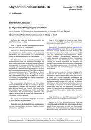 Drucksache 17 / 17 603 Schriftliche Anfrage 17. Wahlperiode Schriftliche Anfrage des Abgeordneten Philipp Magalski (PIRATEN) vom 10. Dezember 2015 (Eingang beim Abgeordnetenhaus am 14. Dezember 2015) und Antwort Ist das Berliner Umweltinformationssystem (UIS) up to date? Im Namen des Senats von Berlin beantworte ich Ihre Frage 2: Wie bewertet der Senat das unter blaku- Schriftliche Anfrage wie folgt: is.server.de/servleVis/950/ einsehbare Umweltinformati- onssystem Stadt und Umwelt? Frage 1: Welche zentralen Informationsmöglichkeiten bietet das Land Berlin für Umweltdaten? Antwort zu 2: Vermutlich ist die Seite http://www.sta- uis.de/servlet/is/950/ gemeint. (Die in der Frage angege- Antwort zu 1: Zentrale Informationsmöglichkeiten für bene Seite ist nicht aufrufbar.) Auf der Homepage des Umweltdaten bieten der Umweltatlas und das Geoportal Ständigen Ausschusses Umweltinformationssysteme (StA (FIS-Broker). Der Internetauftritt von SenStadtOnline UIS) der Bund/Länder-Arbeitsgemeinschaft "Klima, ergänzt das Informationsangebot für Umweltdaten. Energie, Mobilität - Nachhaltigkeit" präsentieren die Länder allgemeine Informationen zu ihren Umweltinfor- Der Umweltatlas ist ein medienübergreifendes Um- mationssystemen. Das Informationssystem Stadt und weltinformationssystem auf räumlicher Grundlage und Umwelt wird textlich beschrieben. Die Angaben zum bietet einen systematischen fachlichen Zugang zu Umwel- Berliner System enthalten die wesentlichen Komponenten tinformationen. Er ist zentrales Mittel der Umweltbericht- des Umweltinformationssystems (Umweltatlas Berlin, erstattung und –information für die Öffentlichkeit (ent- Geoportal Berlin und SenStadtOnline) und sind entspre- sprechend der Umweltinformationsrichtlinie der EU bzw. chend aktuell. des Umweltinformationsgesetzes/ UIG und des Berliner Informationsfreiheitsgesetzes/ IFG) und dient der Bereit- Der Umweltatlas erlaubt den fachlichen Zugang zu In- stellung von Grundlagen für die Planung (z.B. Strategi- formationen über die Umwelt und enthält Fachinformati- sche Umweltprüfung entspr. SUP-Richtlinie der EU bzw. onen über den Bereich der Geodaten hinaus. Das Geopor- UVP-Gesetz, Umweltprüfung nach BauGB, Landschafts- tal enthält eine Vielzahl räumlicher Informationen aus programm nach BlnNatSchG). allen Bereichen der Senatsverwaltung. Mit ca. 280.000 Seitenaufrufen im November 2015 zeigt sich die umfäng- Die systematische Aufbereitung von Umweltdaten liche Nutzung und breite Inanspruchnahme des Umweltat- umfasst die Medien Boden, Wasser, Luft, Klima, Biotope, las. Sowohl das Geoportal als auch der Umweltaltas ge- Flächennutzung, Verkehr/Lärm und Energie sowie einen nießen einen guten Ruf, der einheitliche systematische neuen Bereich Mensch und Umwelt. Dabei werden die Zugang zu unterschiedlich strukturierten Informationen Umweltdaten in enger Abstimmung mit den zuständigen über eine breite Themenpalette werden dabei besonders Fachbereichen der Senatsverwaltung aufbereitet oder geschätzt. erarbeitet, bewertet und für Planung und Öffentlichkeit im Umweltatlas verfügbar gemacht. Frage 3: Befindet sich das 1987 implementierte Portal Der Zugang zu den Geodaten erfolgt über das Geopor- auf dem aktuellen Stand der Informationstechnik? tal Berlin und über den Umweltatlas. Antwort zu 3: Das Informationssystem Stadt und Zusätzlich bieten die Fachauftritte auf den Internetsei- Umwelt bestand und besteht aus den genannten Kompo- ten unter SenStadtOnline ein breites Angebot weiterer nenten, die eng miteinander verzahnt sind. Insbesondere Informationen und Daten. das Geoportal Berlin unterliegt einer stetigen technischen Weiterentwicklung und befindet sich auf dem aktuellen Die Drucksachen des Abgeordnetenhauses sind bei der Kulturbuch-Verlag GmbH zu beziehen. Hausanschrift: Sprosserweg 3, 12351 Berlin-Buckow · Postanschrift: Postfach 47 04 49, 12313 Berlin, Telefon: 6 61 84 84; Telefax: 6 61 78 28.