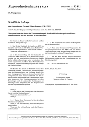 Drucksache 17 / 13 811 Schriftliche Anfrage 17. Wahlperiode Schriftliche Anfrage des Abgeordneten Gerwald Claus-Brunner (PIRATEN) vom 14. Mai 2014 (Eingang beim Abgeordnetenhaus am 15. Mai 2014) und Antwort Wertgutachten des Senats im Zusammenhang mit den Rückkäufen der privaten Unter- nehmensanteile bei den Berliner Wasserbetrieben Im Namen des Senats von Berlin beantworte ich Ihre Schriftliche Anfrage wie folgt: 1.1.2 Wie hoch wurde diese Grenze im Wertgutach- ten des Senats beziffert? 1. Sind für die Rückkäufe der Anteile von RWE im Jahr 2012 und Veolia im Jahr 2013 an den Berliner Was- 1.1.3 Wenn keine Obergrenze im Wertgutachten für serbetrieben Wertgutachten des Senats erstellt worden? den jeweiligen Rückkauf der RWE- bzw. der Veolia- Wenn nein, dann weiter bei 1.2 Anteile festgelegt wurde, welcher Grund bestand dann für die Erstellung des jeweiligen Wertgutachtens? Zu 1.: Im Zusammenhang mit den Rückkäufen der Anteile von RWE und Veolia an der Berlinwasser Gruppe 1.2 Auf der Basis welcher anderen finanziellen wurden von den wirtschaftlichen Beratern des Landes Zielsetzungen wurden dann die Verhandlungen über die Berlin indikative Bewertungen unter verschiedenen Sze- Rückkäufe geführt? narien vorgenommen. Auf Basis dieser Wertindikationen wurden die Kaufpreisverhandlungen geführt und erfolgte Zu 1.1 bis 1.2: siehe Antwort zu 1. die Kaufpreisbildung. Die Berichte über Details der Rückkäufe wurden dem Berlin, den 23. Mai 2014 vertraulich tagenden Unterausschuss Vermögensverwal- tung des Hauptausschusses zur Verfügung gestellt. Die dazu eingegangenen Fragen aus dem parlamentarischen In Vertretung und politischen Raum wurden ausführlich von der Se- natsverwaltung für Finanzen dem Unterausschuss gegen- Dr. Margaretha Sudhof über beantwortet. Der Vermögensausschuss hat diese Senatsverwaltung für Finanzen Bewertungen und die ergänzenden Ausführungen zur Grundlage seiner Empfehlung für den Hauptausschuss und das Abgeordnetenhaus gemacht. (Eingang beim Abgeordnetenhaus am 02. Juni 2014) Wenn ja: 1.1 Ergab sich aus den Wertgutachten eine Obergrenze für die jeweilige Rückkaufsumme? Wenn nein, dann weiter bei 1.1.3 Wenn ja: 1.1.1 Wurde diese Obergrenze bei den jeweiligen Rückkäufen eingehalten? Wenn ja: Um welchen Betrag wurde die Obergrenze unterschritten Wenn nein: Um welchen Betrag wurde die Obergren- ze überschritten Die Drucksachen des Abgeordnetenhauses sind bei der Kulturbuch-Verlag GmbH zu beziehen. Hausanschrift: Sprosserweg 3, 12351 Berlin-Buckow · Postanschrift: Postfach 47 04 49, 12313 Berlin, Telefon: 6 61 84 84; Telefax: 6 61 78 28.