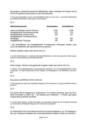Die anderen vorstehend genannten Bibliotheken haben werktags nicht länger als bis 22:00 Uhr geöffnet sowie jeweils an den Sonnabenden. 2. Wie viele Arbeitsplätze und wie viele Schließfächer gibt es in den unter 1.) genannten Bibliotheken bzw. Bibliotheksstandorten (bitte jeweils aufschlüsseln)? Zu 2.: Bibliotheksstandort Arbeitsplätze Schließfächer Jacob-und-Wilhelm-Grimm-Zentrum 1.340 1.708 Zweigbibliothek Rechtswissenschaft 570 574 Zweigbibliothek Campus Nord 428 321 Zweigbibliothek Fremdsprachliche Philologien 169 189* Zweigbibliothek Theologie 124 105 * Die Schließfächer der Zweigbibliothek Fremdsprache Philologien werden auch durch die Mediothek des Sprachenzentrums genutzt. Weitere Angaben liegen dem Senat nicht vor. 3. Ist dem Senat bekannt, zu welchem Grad diese Bibliotheken zu den oben genannten Zeiten ausge- lastet sind (Aufschlüsselung nach Bibliothek/Zeit)? Zu 3.: Siehe Anlage. Darüber hinausgehende Angaben liegen dem Senat nicht vor. 4. Welche Universitätsbibliotheken beziehungsweise Standorte von Universitätsbibliotheken haben Vorschriften, um eigene Studierende bei der Vergabe von Arbeitsplätzen in der Bibliothek zu bevorzu- gen? Zu 4.: Das Jacob-und-Wilhelm-Grimm-Zentrum. 5. Wie bewertet der Senat die Arbeitsplatz-Regelung (HU-Homezone) im Jacob-und-Wilhelm-Grimm- Zentrum? Zu 5.: Der Senat hält die Regelung für angemessen. Er erwartet allerdings, dass die Hum- boldt-Universität zu Berlin sie – wie bislang auch praktiziert – in Zeiten geringerer Frequentierung flexibel handhabt. 6. Ist dem Senat bekannt, welche finanziellen und personellen Ressourcen die Humboldt Universität zur Durchsetzung Arbeitsplatz-Regelung (HU-Homezone) aufwendet? Zu 6.: Ja. Wöchentlich führt eine Wachschutzfirma Kontrollrundgänge in ca. 25 Arbeitsstun- den aus. Hierdurch entstehen der Universität jährliche Kosten in Höhe von 26.000 €. Seite 2 von 3
