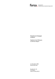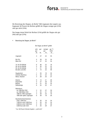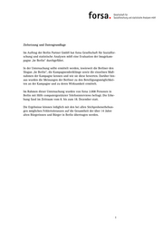 Zielsetzung und Datengrundlage Im Auftrag der Berlin Partner GmbH hat forsa Gesellschaft für Sozialfor- schung und statistische Analysen mbH eine Evaluation der Imagekam- pagne „be Berlin“ durchgeführt. In der Untersuchung sollte ermittelt werden, inwieweit die Berliner den Slogan „be Berlin“, die Kampagnendreiklänge sowie die einzelnen Maß- nahmen der Kampagne kennen und wie sie diese bewerten. Darüber hin- aus wurden die Meinungen der Berliner zu den Beteiligungsmöglichkei- ten an der Kampagne und zu deren Wirksamkeit ermittelt. Im Rahmen dieser Untersuchung wurden von forsa 2.008 Personen in Berlin mit Hilfe computergestützter Telefoninterviews befragt. Die Erhe- bung fand im Zeitraum vom 8. bis zum 18. Dezember statt. Die Ergebnisse können lediglich mit den bei allen Stichprobenerhebun- gen möglichen Fehlertoleranzen auf die Gesamtheit der über 14 Jahre alten Bürgerinnen und Bürger in Berlin übertragen werden. 1