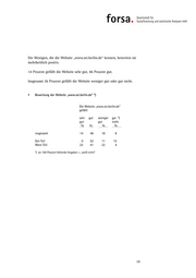 Die Wenigen, die die Website „www.sei.berlin.de“ kennen, bewerten sie mehrheitlich positiv. 14 Prozent gefällt die Website sehr gut, 46 Prozent gut. Insgesamt 26 Prozent gefällt die Website weniger gut oder gar nicht. Bewertung der Website „www.sei.berlin.de“ *) Die Website „www.sei.berlin.de“ gefällt sehr gut weniger gar *) gut gut nicht % % % % insgesamt 14 46 18 8 Ost-Teil 0 52 11 15 West-Teil 22 41 22 4 *) an 100 Prozent fehlende Angaben = „weiß nicht“ 19