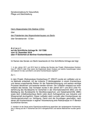 Senatsverwaltung für Gesundheit, Pflege und Gleichstellung Herrn Abgeordneten Dirk Stettner (CDU) über den Präsidenten des Abgeordnetenhauses von Berlin über Senatskanzlei - G Sen - Antwort auf die Schriftliche Anfrage Nr. 18/17268 vom 10. Dezember 2018 über IT-Sicherheit an Berliner Krankenhäusern ___________________________________________________________________ Im Namen des Senats von Berlin beantworte ich Ihre Schriftliche Anfrage wie folgt: 1. In den Jahren 2011 und 2012 fand im Auftrag des Bundes das Projekt „Risikoanalyse Kranken- haus-IT“ (RiKrIT) statt. Was waren die Ergebnisse dieser Analyse und welche Auswirkungen haben sich dadurch für das Land Berlin und seine Krankenhäuser ergeben? Zu 1.: In dem Projekt „Risikoanalyse Krankenhaus-IT“ (RiKrIT) wurde ein Leitfaden und ei- ne Methode entwickelt, mit der kritische IT-Abhängigkeiten in einem Krankenhaus und daraus erwachsende Risiken für die Patientenversorgung und weitere wichtige Prozesse identifiziert und bewertet werden können. Der Leitfaden entstand aus einer Initiative des Senats. Das Vorhaben wurde in den Jahren 2011 und 2012 unter Fe- derführung des Bundesamts für Sicherheit in der Informationstechnik (BSI) und mit Beteiligung des Bundesamts für Bevölkerungsschutz und Katastrophenhilfe (BBK) sowie dem Unfallkrankenhaus Berlin (ukb) durch Auftragnehmer aus Industrie und Wissenschaft durchgeführt. Dieser Leitfaden steht nunmehr allen Krankenhäuser als Handlungsinstrument zur Verfügung. Damit sind die Grundlagen geschaffen, nach denen die Krankenhäuser in eigener Verantwortung eine Risikoanalyse im IT-Bereich durchführen können. 2. Inwiefern ist der Senat seiner Eigentümerverpflichtung gegenüber den landeseigenen Krankenhäu- sern in Bezug auf die IT-Sicherheit seit 2012 nachgekommen und welche Maßnahmen wurden getrof- fen?