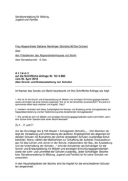 Drucksache 18 / 14 880 Schriftliche Anfrage 18. Wahlperiode Schriftliche Anfrage der Abgeordneten Stefanie Remlinger (GRÜNE) vom 30. April 2018 (Eingang beim Abgeordnetenhaus am 02. Mai 2018) zum Thema: Grund- und Erstausstattung von Schulen und Antwort vom 17. Mai 2018 (Eingang beim Abgeordnetenhaus am 23. Mai 2018) Die Drucksachen des Abgeordnetenhauses sind bei der Kulturbuch-Verlag GmbH zu beziehen. Hausanschrift: Sprosserweg 3, 12351 Berlin-Buckow · Postanschrift: Postfach 47 04 49, 12313 Berlin, Telefon: 6 61 84 84; Telefax: 6 61 78 28.