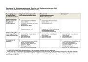 Standards für Mindestangebote der Berufs- und Studienorientierung (BO) Vorlage für den Landesausschuss für Berufsbildung (LAB) am 5.3.2013 1 7. Jahrgangsstufe Integrierte Sekundarschulen Schulen mit Gymnasien a) verpflichtend (ISS)/Gemeinschaftsschulen sonderpädagogischem b) bedarfsorientiert Förderschwerpunkt Senatsverwaltung für a) a) Bildung, Jugend und Unterrichtsfach Wirtschaft Arbeit Unterrichtsfach Wirtschaft Arbeit Wissenschaft Technik (WAT) Technik (WAT) (SenBildJugWiss) mindestens ein Angebot des Dualen Berufswahlpass (BWP) 2 Lernens (DL) Berufswahlpass (BWP) b) b) Wahlpflichtunterricht WAT Angebote des DL: Berufsorientierung, praxisbezogene Angebote Lernarrangement Schülerfirma Senatsverwaltung für b) b) b) Arbeit, Integration und „komm auf Tour - meine Stärken, „komm auf Tour - meine Stärken, „komm auf Tour - meine Stärken, Frauen (SenArbIntFrau) meine Zukunft“ meine Zukunft“ meine Zukunft“ Girls´Day/Boys´Day Girls´Day/Boys´Day Girls´Day/Boys´Day Berlin braucht Dich! Berlin braucht Dich! Berlin braucht Dich! Bundesagentur für b) b) Arbeit (BA) 1 Veranstaltung pro Klasse/Schule 1 Veranstaltung pro Klasse/Schule Berufs- und Lebensplanung, Berufs- und Lebensplanung, Ergründen eigener Stärken und Ergründen eigener Stärken und Schwächen, (BWP) Schwächen, (BWP) Beteiligung am Projekt Beteiligung am Projekt „komm auf Tour“ (Kofinanzierung) „komm auf Tour“ (Kofinanzierung) 1 Aus Sicht der Gymnasien ist die Berufsorientierung in der gymnasialen Oberstufe von großer Bedeutung. 2 Duales Lernen (DL): An Integrierten Sekundarschulen umfasst das Duale Lernen gemäß § 29 der Sekundarstufen-I-Verordnung in der jeweils geltenden Fassung in den Jahrgangsstufen 7 bis 10 Aktivitäten zur Berufs- und Studienorientierung sowie die Vermittlung von Praxisplätzen an geeigneten Lernorten (praxisbezogene Angebote).
