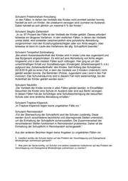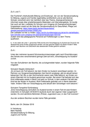 2 Schulamt Friedrichshain-Kreuzberg: „In den Fällen, in denen der Verbleib des Kindes nicht ermittelt werden konnte, handelt es sich um Kinder, die unbekannt verzogen sind (zumeist ins Ausland). Dabei handelt es sich jährlich um maximal 5 % der Kinder.“ Schulamt Steglitz-Zehlendorf: „In ca. 97 Prozent der Fälle ist der Verbleib der Kinder geklärt. Dieses erfordert teilweise ein längeres Verfahren. In den restlichen Fällen, in denen der Verbleib unklar bleibt, wird entweder zwischenzeitlich eine polizeiliche Abmeldung vorgenommen (von den Erziehungsberechtigten oder von Amts wegen), oder teilweise ist dann im Laufe des Verfahrens die allg. Schulpflicht beendet.“ Schulamt Tempelhof-Schöneberg: „Bei einem Auslandsaufenthalt des Kindes wird in erster Linie das Jugendamt und das Bürgeramt angeschrieben. Es wird auf eine Abmeldung von Amts wegen hingewirkt und in den meisten Fällen auch vollzogen. Hier ging es um den unrechtmäßigen Erhalt von Sozialleistungen (Kindergeld, Arbeitslosengeld II, o.ä.) aufgrund des „Scheinaufenthalts“ des Kindes. Seit Anfang des Schuljahres 2018/2019 gibt es einen Fall, in dem der Verbleib von 2 Kindern (männlich) nicht geklärt werden konnte. Die Behörden (Polizei, Jugendamt usw.) sind in den Fall involviert. Das Schulversäumnis wird in diesem Fall nicht weiterverfolgt, bis der Aufenthalt der Kinder geklärt werden kann.“ Schulamt Neukölln: „Der Verbleib der Kinder konnte in allen Fällen geklärt werden. In Einzelfällen besuchten die Kinder eine Schule im Ausland oder sind aus Berlin verzogen. In diesen Fällen hat der Schulträger eine Schulbescheinigung der besuchten Schule oder eine amtliche Abmeldung erhalten.“ Schulamt Treptow-Köpenick: „In Treptow-Köpenick liegen keine ungeklärten Fälle vor.“ Schulamt Reinickendorf: „Für die Überwachung der Schulpflicht sind die Schulen zuständig. Diese werden durch verschiedene bezirkliche und überregionale Stellen unterstützt, um die Einhaltung der Schulpflicht sicherzustellen. Die Zusammenarbeit der verschiedenen Stellen funktioniert in Reinickendorf problemlos. Daher ist die Einhaltung der Schulpflicht in Reinickendorf sichergestellt.“ Aus den anderen Bezirken liegen keine Angaben zu ungeklärten Fällen vor. 5. Inwiefern wurden die Schulen bisher auf das Problem der Verschleppung und Zwangsheirat Minderjähriger aufmerksam gemacht? 7. Was plant der Senat künftig, um Schulen und weitere (staatliche) Institutionen auf das Problem der Verschleppung und Zwangsheirat Minderjähriger aufmerksam zu machen?
