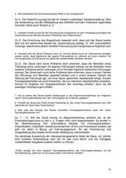 Senatsverwaltung für Finanzen Frau Abgeordnete Sibylle Meister (FDP) über den Präsidenten des Abgeordnetenhauses von Berlin über Senatskanzlei - G Sen - Antwort auf die Schriftliche Anfrage Nr. 18/ 15157 vom 25. Mai 2018 über S-Bahn-Ansparfonds – ein weiterer Schattenhaushalt? ----------------------------------------------------------------------------------------------------------------- Im Namen des Senats von Berlin beantworte ich Ihre Schriftliche Anfrage wie folgt: 1. Wann hat der Senat beschlossen einen sogenannten „Ansparfonds“ im SIWANA IV für die Beschaffung von S-Bahn-Zügen einzurichten? Zu 1.: Der Senat hat in seiner Sitzung am 30.01.2018 eine Vorschlagsliste beschlossen, in welcher der „Ansparfonds S-Bahn-Beschaffung“ mit einem Volumen in Höhe von 113 Mio. € enthalten ist. 2. Wann und in welcher Form wurde und wird das Parlament an der Entscheidung beteiligt? Inwieweit greift die Einrichtung eines solchen Ansparfonds einer parlamentarischen Debatte über die Frage vor, wer in Zukunft S-Bahnen kaufen und in Schuss halten soll? Zu 2.: Der Hauptausschuss hat in seiner Sitzung am 14.03.2018 dem Vorschlag des Senats zur Mittelverwendung der vierten Zuführung an das Sondervermögen Infrastruktur der Wachsenden Stadt und Nachhaltigkeitsfonds (SIWANA) gemäß § 4a des Gesetzes über die Errichtung eines Sondervermögens Infrastruktur der Wachsenden Stadt und Errichtung eines Nachhaltigkeitsfonds (SIWANA ErrichtungsG) zugestimmt. Das Treffen einer Vorsorge in Form eines Ansparfonds steht einer parlamentarischen Debatte nicht entgegen. Des Weiteren verweise ich auf den Bericht rote Nummer RN 0516 D vom 27.04.2018. Auf Seite 9 befindet sich die Erläuterung der Senatsverwaltung für Umwelt und Verkehr zum SIWANA-IV-Berichtsauftrag vom April zum Thema Ansparfonds. 3. Wird der „Ansparfonds“ eine eigene rechtliche Selbständigkeit haben? Sollen dazu ggf. Landesunternehmen oder Tochtergesellschaften von Landesunternehmen gegründet werden? Falls ja, wann wird das Parlament entsprechend beteiligt? Zu 3.: Nein, der „Ansparfonds“ wird keine rechtliche Selbständigkeit haben. 1/3