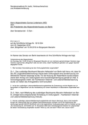 Senatsverwaltung für Justiz, Verbraucherschutz und Antidiskriminierung Herrn Abgeordneten Gunnar Lindemann (AfD) über den Präsidenten des Abgeordnetenhauses von Berlin über Senatskanzlei - G Sen - Antwort auf die Schriftliche Anfrage Nr. 18/16 554 vom 25. September 2018 über „Börgerfest“ am 15.09.2018 im Bürgerpark Marzahn -------------------------------------------------------------------------------------------------------------------- Im Namen des Senats von Berlin beantworte ich Ihre Schriftliche Anfrage wie folgt: Vorbemerkung des Abgeordneten: Am Sonntag, den 15.09.18 fand im Bürgerpark Marzahn ein von mehreren gemeinnützigen Vereinen orga- nisiertes sogenanntes „Börgerfest“ statt, bei dem rohes „Halal“-Hackfleisch gebraten und „gegen Spende“ abgegeben wurde. 1. Wer hat diese Veranstaltung bei den Ordnungsbehörden angemeldet? Zu 1.: Das zuständige Bezirksamt Marzahn-Hellersdorf von Berlin teilt hierzu mit, dass für die JFE (Jugendfreizeiteinrichtung) Impuls beim Ordnungsamt eine Sondernutzung von öffentlichen Flächen beantragt wurde. Für die Nutzung der Rasenfläche wurde entspre- chend dem Antrag vom Ordnungsamt eine Ausnahmegenehmigung gemäß § 6 Abs. 5 Grünanlagengesetz erteilt. Der Fachbereich Veterinär- und Lebensmittelüberwachung wurde von Seiten des Antragstellers nicht konsultiert. 2. Ist bei der zuständigen Lebensmittelüberwachungsbehörde die Zubereitung und die Abgabe von Le- bensmitteln im Allgemeinen und die Verarbeitung von rohem Hackfleisch im Besonderen angemeldet wor- den? Zu 2.: Nein, nach Mitteilung des zuständigen Bezirksamts Marzahn-Hellersdorf von Ber- lin, erfolgte keine entsprechende Anmeldung im Ordnungsamt – Fachbereich Veterinär- und Lebensmittelüberwachung (VetLeb). 3. Hat die zuständige Lebensmittelüberwachungsbehörde sich davon überzeugt, dass a) die Inverkehr- bringer der Lebensmittel über ein gültiges Gesundheitszeugnis verfügen und b) die hygienischen Be- stimmungen gemäß HACCP-Richtlinien und c) die hygienischen Voraussetzungen auch im Hinblick auf die „EU-Verordnung Nr. 2073/2005 vom 15. November 2005 über mikrobiologische Kriterien für Lebensmittel“ bei dieser Veranstaltung eingehalten wurden? Wenn ja, wie und wann? Wenn nein, warum nicht?
