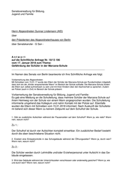 Drucksache 18 / 13 196 Schriftliche Anfrage 18. Wahlperiode Schriftliche Anfrage des Abgeordneten Gunnar Lindemann (AfD) vom 17. Januar 2018 (Eingang beim Abgeordnetenhaus am 18. Januar 2018) zum Thema: Gefährdung der Schüler in der Marcana-Schule und Antwort vom 02. Februar 2018 (Eingang beim Abgeordnetenhaus am 07. Feb. 2018) Die Drucksachen des Abgeordnetenhauses sind bei der Kulturbuch-Verlag GmbH zu beziehen. Hausanschrift: Sprosserweg 3, 12351 Berlin-Buckow · Postanschrift: Postfach 47 04 49, 12313 Berlin, Telefon: 6 61 84 84; Telefax: 6 61 78 28.