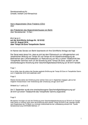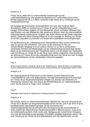 Antwort zu 3: Tempo 30 ist, neben den zu untersuchenden Auswirkungen auf die Luftschadstoffbelastung, eine anerkannte Maßnahme zur Lärmminderung mit einem Minderungspotenzial bis zu 3 dB(A). Außerdem trägt Tempo 30 zur Verbesserung der Verkehrssicherheit bei. Die Aussage der Technischen Universität Berlin (TU) bzw. des Rundfunk Berlin Brandenburg (RBB) zur Auswirkung von Tempo 30 auf die Luftqualität beruht nach hiesigen Erkenntnissen lediglich auf drei Messwerten: Einem ermittelten Mittelwert über zwei Wochen und zwei Mittelwerten über jeweils eine Woche. Allein die unterschiedliche Probenahmedauer erlaubt keinen Vergleich des ersten Wertes mit den beiden folgenden Werten. Diese sehr kleine Datengrundlage ist für eine Aussage zur Wirkung von Tempo 30 auf die Luftqualität unzureichend und erlaubt keine belastbaren Schlussfolgerungen. Für die Beurteilung der Luftbelastung durch Stickstoffdioxid (NO2) ist eine Auswertung über ein ganzes Jahr erforderlich. Zum einen ist der Grenzwert für NO 2 als Jahresmittelwert festgelegt und zum anderen können nur so die im Jahresverlauf variierenden Einflüsse der Meteorologie und der Verkehrsmenge berücksichtigt werden. Daher ist die Untersuchung für den Tempelhofer Damm und die übrigen vier Teststraßen nach Anordnung von Tempo 30 für die Dauer eines Jahres vorgesehen. Eine Bewertung der Wirkung von Tempo 30 auf die Luftqualität erfolgt durch den Senat erst nach Vorliegen der Jahresmittelwerte und der vollständigen Untersuchungsdaten. Frage 4: Welche anderen Intention verfolgt der Senat mit der Ausdehnung von Tempo 30-Zonen auf Hauptstraßen, da eine Luftverbesserung durch die Einführung einer Tempo 30-Zone nicht nachgewiesen werden konnte? Antwort zu 4: Der eingangs genannte Pilotversuch mit der Zielsetzung einer Reduzierung der Luftschadstoffe ist noch nicht abgeschlossen. Sonstige streckenbezogene Anordnungen von Tempo 30 auf Hauptverkehrsstraßen erfolgen aus Gründen der Sicherheit und Ordnung des Verkehrs oder zum Schutz der Wohnbevölkerung vor verkehrsbedingtem Lärm. Auf die Antwort zu Frage 3 wird verwiesen. Frage 5: Überwiegen diese Gründe den Nachteil einer Verlangsamung des Verkehrsflusses? Antwort zu 5: Die Gründe, welche zu verkehrsbeschränkenden Maßnahmen, wie einer Anordnung von Tempo 30 im Bereich von Hauptverkehrsstraßen führen können, sind in der StVO im § 45 bundeseinheitlich abschließend geregelt. Ob die Anordnung einer Geschwindigkeitsreduzierung und somit eine Verlangsamung des Verkehrsflusses in einem bestimmten Abschnitt einer Hauptverkehrsstraße in Betracht kommt, muss durch die Verkehrslenkung Berlin (VLB) immer unter Abwägung aller verkehrlichen Interessen und unter Berücksichtigung des jeweiligen Einzelfalles sorgfältig abgewogen werden. Bei einer Anordnung von Tempo 30 sind beispielsweise auch die Auswirkungen auf den 2