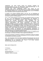 Senatsverwaltung für Integration, Arbeit und Soziales Frau Abgeordnete Emine Demirbürken-Wegener (CDU) über den Präsidenten des Abgeordnetenhauses von Berlin über Senatskanzlei - G Sen - Antwort auf die Schriftliche Anfrage Nr. 18/16701 vom 11. Oktober 2018 über Zweite Nachfrage zur Schriftlichen Anfrage 18/13774 "Wir setzen den IMP um…" - Wie steht es damit im Bereich Soziales (3)? ------------------------------------------------------------------------------------------------------------------------------- Im Namen des Senats von Berlin beantworte ich Ihre Schriftliche Anfrage wie folgt: 1. Konnte die Anlage zum Berliner Rahmenvertrag entsprechend der Antwort des Senats 18/13774 fristgerecht im Mai 2018 durch die Kommission 75 vorgelegt werden? Wenn nein, warum nicht? Wann rechnet der Senat beim Eintreten einer solchen Situation der Vorlage? 2. Falls die Anlage zum Berliner Rahmenvertrag fristgemäß vorgelegt wurde, welche Aussagen enthält diese zur Frage der Umsetzung von Schutzkonzepten in den Einrichtungen der Behindertenhilfe (insbesondere Wohneinrichtungen)? 3. Welche Verabredungen hat der Senat mit der Kommission 75 getroffen, wer die verbindliche Einführung von Schutzkonzepten in den Einrichtungen der Behindertenhilfe kontrollieren und begleiten soll und welche spezifizierten Monitoringmaßnahmen in diesem Bereich hat der Senat selbst vorgesehen? 4. Welche Entscheidungen sind nunmehr getroffen worden, ob die Unterarbeitsgruppe gegen Gewalt und Missbrauch der Kommission 75 auch nach Vorlage der Anlage zur Berliner Rahmenvereinbarung weiterarbeiten wird? Wenn nein, welche Gründe gibt es dafür, warum diese Struktur nicht auf Dauer genutzt wird? Zu 1., 2., 3. und 4.: Die Unterarbeitsgruppe gegen Gewalt und Missbrauch wurde von der Kommission 75 (KO 75) - §§ 75ff. SGB XII - eingesetzt, um die Anlage „Regelungen zum Schutz der Leistungsberechtigten vor Gewalt, sexualisierter Gewalt und Missbrauch“ gemäß des Beschlusses Nr. 2/2017 der KO 75 für den Bereich Soziales zu erarbeiten. Die Unterarbeitsgruppe gegen Gewalt und Missbrauch hat die Anlage unter Berücksichtigung erforderlicher Expertise und Perspektiven erarbeitet (siehe Antwort 1