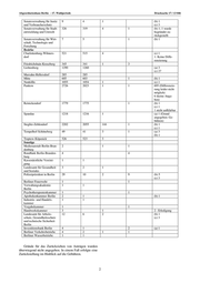 Abgeordnetenhaus Berlin – 17. Wahlperiode Drucksache 17 / 13 046 Senatsverwaltung für Justiz 9 4 1 (b) 1 und Verbraucherschutz (c) 3 Senatsverwaltung für Stadt- 326 319 4 1 (b) 1; 1 wurde entwicklung und Umwelt begründet zu- rückgestellt Senatsverwaltung für Wirt- 7 5 1 (b) 1 schaft, Technologie und Forschung Bezirke Charlottenburg-Wilmers- 521 515 4 (c) 1 dorf 1: Keine Diffe- renzierung Friedrichshain-Kreuzberg 345 341 1 3 Lichtenberg 1290 1260 (a) 3 (c) 27 Marzahn-Hellersdorf 285 285 Mitte 605 603 1 (b) 1 Neukölln 1055 1054 1 (c) 1 Pankow 2726 2023 1 1 695 (Differenzie- rung leider nicht möglich) 6 (keine Anga- ben) Reinickendorf 1779 1775 1 (b) 1 (c) 1 1 nicht aufklärbar Spandau 1218 1216 1 (a) 1 (Grund angegeben: Ge- bühren) Steglitz-Zehlendorf 2202 2055 144 1 (b) 1 (c) 1 Tempelhof-Schöneberg 49 41 3 1 (a) 3 (b) 1 Treptow-Köpenick 526 523 3 Sonstige Medienanstalt Berlin-Bran- 2 1 1 denburg Rundfunk Berlin-Branden- 4 4 burg Kassenärztliche Vereini- 1 1 gung Landesamt für Gesundheit 3 2 1 und Soziales Polizeipräsident in Berlin 29 10 2 9 (b) 5 (c) 3 Berliner Feuerwehr 1 1 Verwaltungsakademie 1 1 Berlin Psychotherapeutenkammer 1 1 Apothekenkammer Berlin 2 1 (b) 1 Industrie- und Handels- 1 1 kammer Vergabekammer 1 1 Handwerkskammer 3 1 2 : Erledigung Landesamt für Arbeits- 12 6 2 (b) 1 schutz, Gesundheitsschutz (c) 3 und technische Sicherheit Berlin Investitionsbank Berlin 4 1 2 (a) 1 Berliner Verkehrsbetriebe 4 2 1 1 Berliner Wasserbetriebe 1 1 Gründe für das Zurückziehen von Anträgen wurden überwiegend nicht angegeben. In einem Fall erfolgte eine Zurückstellung im Hinblick auf die Gebühren. 2