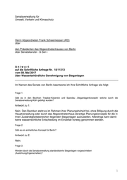 Drucksache 18 / 11 313 Schriftliche Anfrage 18. Wahlperiode Schriftliche Anfrage des Abgeordneten Frank Scheermesser (AfD) vom 08. Mai 2017 (Eingang beim Abgeordnetenhaus am 29. Mai 2017) zum Thema: Wasserbehördliche Genehmigung von Steganlagen und Antwort vom 08. Juni 2017 (Eingang beim Abgeordnetenhaus am 13. Juni 2017) Die Drucksachen des Abgeordnetenhauses sind bei der Kulturbuch-Verlag GmbH zu beziehen. Hausanschrift: Sprosserweg 3, 12351 Berlin-Buckow · Postanschrift: Postfach 47 04 49, 12313 Berlin, Telefon: 6 61 84 84; Telefax: 6 61 78 28.