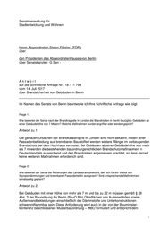 Drucksache 18 / 11 798 Schriftliche Anfrage 18. Wahlperiode Schriftliche Anfrage des Abgeordneten Stefan Förster (FDP) vom 14. Juli 2017 (Eingang beim Abgeordnetenhaus am 14. Juli 2017) zum Thema: Brandsicherheit von Gebäuden in Berlin und Antwort vom 26. Juli 2017 (Eingang beim Abgeordnetenhaus am 31. Juli 2017) Die Drucksachen des Abgeordnetenhauses sind bei der Kulturbuch-Verlag GmbH zu beziehen. Hausanschrift: Sprosserweg 3, 12351 Berlin-Buckow · Postanschrift: Postfach 47 04 49, 12313 Berlin, Telefon: 6 61 84 84; Telefax: 6 61 78 28.