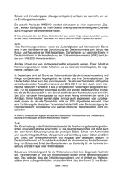 Schutz- und Verwaltungsplan (Managementsystem) verfügen, der ausreicht, um sei- ne Erhaltung sicherzustellen. Die aktuelle Praxis der UNESCO orientiert sich zudem an einer sogenannten „Gap- List“, wonach künftig fast nur noch Objekte unterrepräsentierter Kategorien Chancen auf Eintragung in die Welterbeliste haben. 3. Wer entscheidet über den Status „Weltkulturerbe“ bzw. welche Wege müssen beschritten werden, um den Status „Weltkulturerbe“ zu erhalten und welche zeitlichen Abläufe ergeben sich daraus? Zu 3.: Das Nominierungsverfahren sowie die Zuständigkeiten auf internationaler Ebene sind in den Richtlinien für die Durchführung des Übereinkommens zum Schutz des Kultur- und Naturerbes der Welt festgehalten. Die Verfahren auf nationaler Ebene in Deutschland sind in der Handreichung der Kultusministerkonferenz (KMK) der Län- der zum UNESCO-Welterbe erläutert. Anträge können nur vom Vertragsstaat selbst eingereicht werden. Erster Schritt im Nominierungsverfahren ist die Aufnahme auf die nationale Vorschlagsliste, die soge- nannte „Tentative List“. In Deutschland sind auf Grund der Kulturhoheit der Länder Unterschutzstellung und Pflege von Denkmälern Angelegenheit der Länder und ihrer Denkmalbehörden. Die Länder haben daher auch das Vorschlagsrecht. Die aktuelle Tentativliste ist Ergebnis eines bundesweiten Auswahlverfahrens von 2012-2014, bei dem durch einen inter- national besetzten Fachbeirat 9 aus 31 eingereichten Vorschlägen ausgewählt wur- den. Für die ausgewählten Vorschläge wurden und werden Welterbeanträge erarbei- tet, die die Bundesrepublik in den jährlich stattfindenden Komiteesitzungen einreicht. Seit 2018 darf jeder Vertragsstaat nur noch einen Antrag einreichen (bis dahin 2-3 Anträge). Immer häufiger werden dabei Anträge auch abgewiesen oder zurückge- stellt, sodass die aktuelle Tentativliste nicht vor 2025 abgearbeitet sein wird. Über eine Fortführung der deutschen Tentativliste hat die KMK unter Berücksichtigung der Überrepräsentanz europäischer und speziell deutscher Welterbestätten nicht ent- schieden. 4. Welche Konsequenzen ergeben sich aus dem Status eines Weltkulturerbes bzw. inwieweit sind bauliche Veränderungen an einem Weltkulturerbe möglich? Zu 4.: Die Einschreibung in die Welterbeliste bedeutet die Anerkennung des außergewöhn- lichen universellen Wertes einer Stätte für die gesamte Menschheit und damit auch des sehr hohen Schutzanspruches der jeweiligen Stätte. Schutz von Authentizität und visueller Integrität, Erhalt, Management und Vermittlung dieser Stätten sind Sinn und Zweck der Welterbekonvention und Aufgabe aller beteiligten Akteure. In Deutschland kommt auf Grund der Kulturhoheit die Verantwortung für die Sicherstel- lung von Schutz und Erhalt den Bundesländern zu. Zuständig für die konkrete Um- setzung sind die Träger einer Welterbestätte. Schutz und Entwicklung sind für die Welterbekonvention kein Gegensatz. Vielmehr gilt: Veränderungen in und um Welterbestätten sollten immer welterbeverträglich sein. Dies bedeutet, dass alle Entwicklungsprojekte in und im Umfeld von Welterbe- stätten deren außergewöhnlichen universellen Wert, also den Grund für ihre Bedeu- Seite 2 von 3