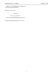 Abgeordnetenhaus Berlin – 17. Wahlperiode Drucksache 17 / 15 401 Frage 6: Auf welche Art und Weise und mit welchem Antwort zu 10: Für die Vorbereitung des Straßen- Ziel sollen Fahrgast-, Verkehrs- und Umweltverbände bahnvorhabens sind zu verschiedenen Zeiten an verschie- sowie Anwohner*innen und ggf. weitere Akteur*innen denen Stellen Mittel verausgabt worden, wie zum Beispiel und Bevölkerungsgruppen an der Planung des Straßen- im Zusammenhang mit dem teilweisen Einbau von Glei- bahn-Neubaus beteiligt werden? sen in die Leipziger Straße 2000/01 durch die ehemalige Senatsverwaltung für Bauen, Wohnen und Verkehr. Ak- Antwort zu 6: Gemäß § 25, Abs. 3 Verwaltungsver- tuell, d. h. im Zeitraum ab 2010, wurden bisher projektbe- fahrensgesetz (VwVfG) ist eine frühzeitige Beteiligung zogen 263.761,51 € verausgabt, die dem Kapitel 1270 mindestens durch den Vorhabenträger vorzusehen. Ob Titel 542 20 „Vorbereitungskosten für den schienenge- und in welchem Umfang bereits früher beispielsweise bundenen Nahverkehr“ entstammten. Informationsveranstaltungen und -bereitstellungen erfol- gen können, wird derzeit geprüft. Frage 11: Wie setzen sich die voraussichtlichen Kos- ten des Straßenbahnneubaus zusammen? Welche Landes-, Frage 7: Welche Erkenntnisse über die Wirtschaft- Bundes- und ggf. welche EU-Fördermittel sind hierfür lichkeit der geplanten Straßenbahnlinie, das zu erwar- eingeplant? (Bitte nach Mittelverwendung und -herkunft tende Fahrgastaufkommen, die Netzwirkung im öffentli- aufschlüsseln.) chen Nahverkehr sowie über die zu erwartenden Auswir- kungen auf lokale Lärmbelastung und Luftverschmutzung Antwort zu 11: Die Kosten für das Straßenbahnvorha- liegen dem Senat vor? ben setzen sich primär aus den Kosten für Gleis- und Fahrleitungsbau sowie für die Haltestellen zusammen, Frage 9: Auf welcher Grundlage schätzt der Senat die dazu kommt ein Anteil für den straßenbahnbedingten geplante Straßenbahnverbindung als „fahrgastwirksam“ Straßenbau (der nicht identisch ist mit den Gesamtkosten und „nachfragesteigernd“ ein, wie im aktuellen StEP für den Straßenbau). Aufgrund des Kostenumfangs für Verkehr formuliert? das Straßenbahnvorhaben von unter 50 Mio. € können keine Bundesmittel in Anspruch genommen werden. Antwort zu 7 und 9: Im Ergebnis der Wirtschaftlich- Zudem läuft das Gemeindeverkehrsfinanzierungsgesetz keitsberechnungen ergibt sich ein Nutzen-Kosten-Indika- (GVFG) 2019 aus. In jedem Falle wird zum Zeitpunkt der tor deutlich über 1. Für die Maßnahme ist damit der anstehenden Realisierung des Straßenbahnvorhabens die volkswirtschaftliche Nutzen nachgewiesen. Die Straßen- Möglichkeit geprüft, ob GVFG-Nachfolgemittel oder bahn weist im Planungskorridor eine um bis zu 10.000 Fördermittel aus sonstigen Quellen in Anspruch genom- Personenfahrten/Werktag höhere Nachfrage auf als der men werden können. Gemäß Stadtentwicklungsplan Bus. Neben der Verlagerung vom motorisierten Individu- (StEP) Verkehr ist zunächst eine Finanzierung aus Lan- alverkehr (MIV) zum Öffentlichen Verkehr (ÖV) treten desmitteln unterstellt. auch positive Effekte für heutige Nutzerinnen und Nutzer von Bus und Bahn auf. Neben der Reduzierung der Reise- zeiten und Umsteigevorgänge – insbesondere auf der Frage 12: Wie viel wird die Verlegung des „Boulevard Relation östliche-südliche Stadtteile – gibt es auch eine der Stars“ am Potsdamer Platz von der voraussichtlichen Entlastungswirkung für die hochbelastete U2, so dass auf Straßenbahntrasse auf die seitlichen Gehwege kosten und eine Taktverdichtung verzichtet werden kann. Dezidierte aus welchem Haushaltstitel werden diese Kosten finan- Aussagen über lokale Auswirkungen von Lärm- oder ziert? Luftverschmutzung werden in Zusammenhang mit der Erarbeitung der Planfeststellungsunterlagen erarbeitet. Antwort zu 12: Der im Mittelstreifen der Potsdamer Straße gelegene Teil des „Boulevards der Stars“ wurde als temporäre Zwischennutzung errichtet, um diesen inner- Frage 8: Aus welchen Jahren stammen die Bedarfser- städtischen Ort herausragender Bedeutung bis zum Bau mittlung und die Kosten-Nutzen-Analyse für den Stra- der Straßenbahn nicht brach liegen zu lassen. Die kon- ßenbahn-Neubau und wann werden diese den aktuellen zeptionellen Überlegungen zu einer Teilverlegung des Gegebenheiten angepasst? Boulevards sind noch nicht abgeschlossen. Unabhängig davon, ob und wie eine Verlegung stattfindet, kann davon Antwort zu 8: Die Untersuchungen wurden im Zeit- ausgegangen werden, dass der Straßenbahn keine Mehr- raum 2011-2014 durchgeführt. Damit ist gewährleistet, kosten entstehen werden. dass die Basis für die Ermittlungen des Mengengerüstes und der Nutzen-Kosten-Analyse aktuell ist. Gemäß Stadt- entwicklungsplan Verkehr (StEP Verkehr) ist die Maß- Frage 13: Wie wird die im aktuellen StEP Verkehr als nahme bis 2025 umzusetzen. langfristiges Infrastrukturvorhaben angekündigte Verlän- gerung der Straßenbahnlinie vom Kulturforum zum Rat- Frage 10: Welche Kosten sind für konzeptionelle, pla- haus Steglitz in der Planung des aktuellen Vorhabens nerische und bauliche Vorarbeiten bereits entstanden und zwischen Alexanderplatz und Kulturforum berücksich- aus welchen Quellen wurden diese finanziert? (Bitte nach tigt? Mittelverwendung und -herkunft aufschlüsseln.) 2