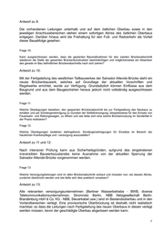 Antwort zu 9: Die vorhandenen Leitungen unterhalb und auf dem östlichen Überbau sowie in den jeweiligen Anschlussbereichen stehen einem sofortigen Abriss des östlichen Überbaus entgegen. Darüber hinaus wird die Freihaltung für den Fuß- und Radverkehr als Vorteil dieser Bauabfolge gesehen. Frage 10: Kann ausgeschlossen werden, dass die geplanten Baumaßnahmen für den zweiten Brückenabschnitt wiederum die Statik der gesamten Brückenkonstruktion beeinträchtigen und möglicherweise ein Absenken des gerade im Bau befindlichen Brückenabschnitts nach sich ziehen? Antwort zu 10: Mit der Fertigstellung des westlichen Teilbauwerkes der Salvador-Allende-Brücke steht ein neues Brückenbauwerk, welches auf Grundlage der aktuellen Vorschriften und Regelwerke errichtet, wurde zur Verfügung. Grundsätzlich können Einflüsse aus dem Baugrund und aus dem Baugeschehen heraus jedoch nicht vollständig ausgeschlossen werden. Frage 11: Welche Überlegungen bestehen, den gesperrten Brückenabschnitt bis zur Fertigstellung des Neubaus zu erhalten und per Sondergenehmigung zu Gunsten der Notfallversorgung, beispielsweise für den Einsatz von Feuerwehr- und Rettungswagen, zu öffnen und wie ließe sich eine solche Brückennutzung im Sonderfall in der Praxis realisieren? Frage 12: Welche Überlegungen bestehen dahingehend, Sondergenehmigungen für Einsätze im Bereich der häuslichen Krankenpflege und –versorgung auszustellen? Antwort zu 11 und 12: Nach intensiver Prüfung kann aus Sicherheitsgründen, aufgrund des eingetretenen irreversiblen Bauwerkszustandes keine Ausnahme von der aktuellen Sperrung der Salvador-Allende-Brücke vorgenommen werden. Frage 13: Welche Versorgungsleitungen sind im alten Brückenabschnitt verbaut und müssten nun, bei dessen Abriss, zunächst überbrückt werden und wie ließe sich dies praktisch umsetzen? Antwort zu 13: Alle relevanten versorgungsunternehmen (Berliner Wasserbetriebe - BWB, diverse Telekommunikationsunternehmen, Stromnetz Berlin, NBB Netzgesellschaft Berlin- Brandenburg mbH & Co. KG - NBB, Steuerkabel usw.) sind im Bestandsüberbau und in den Vorlandbereichen verlegt. Eine provisorische Überbrückung ist deshalb nicht realistisch machbar, so dass die Leitungen nach Fertigstellung des neuen Überbaus in diesen verlegt werden müssen, bevor der geschädigte Überbau abgerissen werden kann. 4