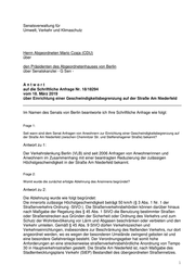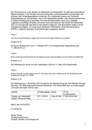 Der Verkehrsraum in der Straße Am Niederfeld ist übersichtlich. Es gibt keine besonderen Gefahrenstellen. In der Straße sind keine besonders schützenswerten Einrichtungen wie Schulen oder Kindertagesstätten vorhanden. Ein verstärktes Queren der Fahrbahn, beispielsweise von Schulkindern, kann nicht beobachtet werden. Das Verkehrsaufkommen in diesem Straßenzug ist ebenfalls nicht überdurchschnittlich hoch, die Unfalllage insgesamt unauffällig. Erhöhte Lärmwerte sind nicht bekannt. Die Straße Am Niederfeld wird von Omnibussen des BVG-Linienverkehrs befahren. Der Busverkehr sollte in seiner Fahrgeschwindigkeit, im Lichte eines attraktiven Öffentlichen Personennahverkehrs (ÖPNV), möglichst geringen Einschränkungen ausgesetzt werden. Frage 3: Seit wann ist der Widerspruch gegen die durch die VLB erfolgte Ablehnung anhängig? Antwort zu 3: Es lag ein Widerspruch vom 11. Oktober 2017 mit nachgereichter Begründung vom 11. Mai 2018 vor. Frage 4: Wann erfolgt eine Entscheidung über die Begrenzung der Geschwindigkeit auf der Straße Am Niederfeld? Antwort zu 4: Der Widerspruch wurde von der zuständigen VLB am 11. März 2019 beschieden. Frage 5: Warum findet die Verkehrszählung vom 07. November 2018 keine Erwähnung bei der Beantwortung der Schriftlichen Anfrage 18/ 17 806? Antwort zu 5: Die Zählung vom 7. November 2018 wurde bei der Beantwortung der Schriftlichen Anfrage Nummer 18/17806 bedauerlicherweise übersehen. Der Senat bittet dies zu entschuldigen und reicht die Daten hiermit nach: Straße Erhebungstag Dauer DTVw im Querschnitt Straße „Am Niederfeld“ 07.11.2018 0 bis 24 Uhr 7.700 Kfz/24 Std. (westl. Penkuner Weg) Berlin, den 04.04.2019 In Vertretung Stefan Tidow Senatsverwaltung für Umwelt, Verkehr und Klimaschutz 2