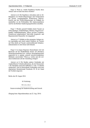 Drucksache 17 / 14 327 Schriftliche Anfrage 17. Wahlperiode Schriftliche Anfrage des Abgeordneten Harald Moritz (GRÜNE) vom 04. August 2014 (Eingang beim Abgeordnetenhaus am 04. August 2014) und Antwort Alleenschutz und Winterdienst Im Namen des Senats von Berlin beantworte ich Ihre Antwort zu 4: Schriftliche Anfrage wie folgt: Winterperiode 2005/06 – 26.533 t Die Schriftliche Anfrage betrifft Sachverhalte, die der 2006/07 – 5.170 t Senat nicht aus eigener Zuständigkeit und Kenntnis be- 2007/08 – 4.752 t antworten kann. Er ist gleichwohl bemüht, Ihnen eine 2008/09 – 17.709 t Antwort auf Ihre Anfrage zukommen zu lassen und hat 2009/10 – 33.718 t daher die Berliner Stadtreinigungsbetriebe (BSR) um eine 2010/11 – 28.260 t Stellungnahme gebeten. die von dort in eigener Verant- 2011/12 – 6.655 t wortung erstellt und dem Senat übermittelt wurde. Sie 2012/13 – 38.198 t wird nachfolgend wiedergegeben. 2013/14 – 10.254 t Frage 1: Gibt es eine Prioritätenliste, nach der Auf- Die Menge Kilogramm je Kilometer Straße lässt sich taumittel und abstumpfende Streumittel eingesetzt werden nicht qualitativ belastbar beziffern. In Berlin wird im (z.B. nach DTV, Straßenkategorie, Wasserschutzgebiet, Rahmen des differenzierten Winterdienstes, im Regelwin- Baumbestand)? terdienst nach StrReinG § 3 Abs. 7 nur punktuell Feucht- salz ausgebracht, abweichend davon bei extremer Glätte Antwort zu 1: Ja, nach dem Straßenreinigungsgesetz als „Streckenstreuung“ in der Einsatzstufe 1. Daher erge- (StrReinG) § 3 Abs. 5, 6, 7, 8. ben sich als Durchschnittsmenge je Kilometer keine aus- sagekräftigen Werte. Frage 2: Werden Alleenbestände beim Straßenwinter- dienst gesondert behandelt? Frage 5: Wurde von Seiten einer Senatsverwaltung oder eines Straßenbauamtes eine Analyse zur Belastung Antwort zu 2: Nein, Einstufungskriterien sind die des Wurzelbereiches an Bäumen durch Auftausalz, Salz- Festlegungen nach dem StrReinG § 3 Abs. 5. rückstände im Boden, in Auftrag gegeben? Antwort zu 5: Von den Berliner Stadtreinigungsbe- Frage 3: Welche Auftaumittel werden bei Temperatu- trieben (BSR) werden in Zusammenarbeit und nach Vor- ren unter – 10°C verwendet? gaben des Pflanzenschutzamtes Berlin jährlich seit Ein- führung des differenzierten Winterdienstes mit der 6. Antwort zu 3: Feuchtsalz (FS30), bestehend in Berlin Novelle des Straßenreinigungsgesetzes vom 02.10.2003 aus 70 % NaCl als Trockenstoff und 30 % CaCl2-Lösung Blatt- und Bodenproben an festgelegten Standorten in ca. 20 %ig. Straßen der Einsatzstufe 1 und Referenzpunkten in der Einsatzstufe 2 entnommen, die von einem unabhängigen Labor untersucht werden. Analysiert wird der Natrium-, Frage 4: Wie viele Tonnen Salz in jeglicher Form Kalium- und Chloridgehalt im Boden und Blättern sowie wurden in den Wintermonaten seit 2005 auf den Berliner der Zustand der Blätter. Straßen ausgebracht und wie viel ist das pro Kilometer Straße durchschnittlich? Die Drucksachen des Abgeordnetenhauses sind bei der Kulturbuch-Verlag GmbH zu beziehen. Hausanschrift: Sprosserweg 3, 12351 Berlin-Buckow · Postanschrift: Postfach 47 04 49, 12313 Berlin, Telefon: 6 61 84 84; Telefax: 6 61 78 28.