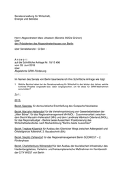 Drucksache 18 / 15 496 Schriftliche Anfrage 18. Wahlperiode Schriftliche Anfrage des Abgeordneten Marc Urbatsch (GRÜNE) vom 28. Juni 2018 (Eingang beim Abgeordnetenhaus am 02. Juli 2018) zum Thema: Abgelehnte GRW- Förderung und Antwort vom 10. Juli 2018 (Eingang beim Abgeordnetenhaus am 12. Jul. 2018) Die Drucksachen des Abgeordnetenhauses sind bei der Kulturbuch-Verlag GmbH zu beziehen. Hausanschrift: Sprosserweg 3, 12351 Berlin-Buckow · Postanschrift: Postfach 47 04 49, 12313 Berlin, Telefon: 6 61 84 84; Telefax: 6 61 78 28.