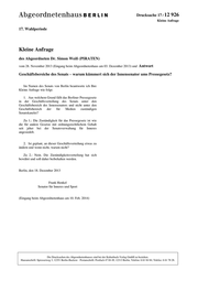 Drucksache 17 / 12 926 Kleine Anfrage 17. Wahlperiode Kleine Anfrage des Abgeordneten Dr. Simon Weiß (PIRATEN) vom 28. November 2013 (Eingang beim Abgeordnetenhaus am 03. Dezember 2013) und Antwort Geschäftsbereiche des Senats – warum kümmert sich der Innensenator ums Pressegesetz? Im Namen des Senats von Berlin beantworte ich Ihre Kleine Anfrage wie folgt: 1. Aus welchem Grund fällt das Berliner Pressegesetz in der Geschäftsverteilung des Senats unter den Geschäftsbereich des Innensenators und nicht unter den Geschäftsbereich der für Medien zuständigen Senatskanzlei? Zu 1.: Die Zuständigkeit für das Pressegesetz ist wie die für andere Gesetze mit ordnungsrechtlichem Gehalt seit jeher bei der Senatsverwaltung für Inneres angesiedelt. 2. Ist geplant, an dieser Geschäftsverteilung etwas zu ändern und wenn nicht, warum nicht? Zu 2.: Nein. Die Zuständigkeitsverteilung hat sich bewährt und soll daher beibehalten werden. Berlin, den 18. Dezember 2013 Frank Henkel Senator für Inneres und Sport (Eingang beim Abgeordnetenhaus am 10. Feb. 2014) Die Drucksachen des Abgeordnetenhauses sind bei der Kulturbuch-Verlag GmbH zu beziehen. Hausanschrift: Sprosserweg 3, 12351 Berlin-Buckow · Postanschrift: Postfach 47 04 49, 12313 Berlin, Telefon: 6 61 84 84; Telefax: 6 61 78 28.