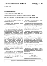 Drucksache 17 / 17 148 Schriftliche Anfrage 17. Wahlperiode Schriftliche Anfrage des Abgeordneten Martin Delius (PIRATEN) vom 07. Oktober 2015 (Eingang beim Abgeordnetenhaus am 08. Oktober 2015) und Antwort BER-Debakel CXXXIX: Stand der Mängelabarbeitung auf der Baustelle des BER Im Namen des Senats von Berlin beantworte ich Ihre Frage 3: Wie ist der gegenwärtige Stand der Abarbei- Schriftliche Anfrage wie folgt: tung der in 2. genannten „Mängelliste“? Die Antworten beruhen auf Angaben der Flughafen Antwort zu Frage 3: Der gegenwärtige Abarbeitungs- Berlin Brandenburg GmbH (FBB). stand ist tagesaktuell in der Datenbank abgebildet. Laut Stand vom 13.10.2015 sind von den ca. 91.000 Datensät- Es wird ausdrücklich darauf hingewiesen, dass die zen ca. 48.000 Datensätze komplett abgearbeitet. Richtigkeit der Angaben im ausschließlichen Verantwor- tungsbereich der Geschäftsführung der FBB liegt. Alle Mängel werden im Zuge des weiteren Baufort- schrittes und/oder mit Erreichung der weiteren Meilen- Frage 1: Wurden nach Abschluss der sog. Mängelliste, steine abgearbeitet und fortlaufend abgemeldet. die unter dem damaligen Technischen Geschäftsführer der Flughafen Berlin Brandenburg GmbH, Herrn H. A., in Frage 4: Haben sich bei Zuständigkeit, Organisation, Auftrag gegeben wurde, weitere Projekte zur Mängeler- Steuerung und Kontrolle der Abarbeitung der in 2. ge- fassung in Auftrag gegeben? Wenn ja, zu welchem Zeit- nannten „Mängelliste“ seit 2012 Veränderungen ergeben? punkt, durch welche Stellen und an welchen jeweiligen Wenn ja, welche? Auftragnehmer? Antwort zu Frage 4: Im Oktober 2014 wurde die Antwort zu Frage 1: Nach dem Ausscheiden von Struktur des BER-Projekts angepasst. Seitdem wickeln Herrn A. aus der FBB wurde die weitere Mängelaufnah- sog. Flächenteams die Fertigstellung der Baufelder als me eingestellt und die bis dahin vorliegende Mängelliste „eigenständiges Bauvorhaben“ ab. Die Flächenteams nicht weitergeführt. Ein offizieller Abschluss der von bestehen aus Mitarbeitern der FBB, der Projektsteuerung, Herrn A. in Auftrag gegebenen Mängelaufnahme und der Objektüberwachung, Planern sowie den Baufirmen. Mängelliste wurde nicht vollzogen. Sehr wohl wurden Die Abarbeitung der Mängel erfolgt in den Flächenteams aber die aufgeführten Mängel bewertet und klassifiziert in der Verantwortung der Objektüberwachung. und befinden sich in der Abarbeitung. Weitere Projekte zur Mängelerfassung wurden nicht in Auftrag gegeben. Frage 5: Welche Stellen berichten dem Aufsichtsrat der Flughafen Berlin Brandenburg GmbH in welcher Form über Fortschritt und Bearbeitungsstand der unter 2. Frage 2: Wie wird der jeweilige Bearbeitungsstand der genannten „Mängelliste“? unter Herrn A. in Auftrag gegebenen „Mängelliste“ do- kumentiert und welche Stellen sind mit dieser Dokumen- Antwort zu Frage 5: Die Geschäftsleitung der FBB be- tation beauftragt? richtet dem Aufsichtsrat zu jeder AR-Sitzung in Form des Berichts SPRINT BER über den aktuellen Stand der Antwort zu Frage 2: Der Stand der Mängelabarbeitung Mängelabarbeitung. wird fortlaufend in einer eigens dafür programmierten Datenbank abgebildet. In dieser Datenbank wurden dar- Berlin, den 21. Oktober 2015 über hinaus alle weiteren im Projekt BER vorhandenen Daten über Mängel und Restleistungen konsolidiert. Da- Michael Müller mit wurde im Rahmen des Projekts SPRINT BER erst- Regierender Bürgermeister mals eine einheitliche Datengrundlage für die Fertigstel- lung des BER geschaffen. (Eingang beim Abgeordnetenhaus am 26. Okt. 2015) Die Drucksachen des Abgeordnetenhauses sind bei der Kulturbuch-Verlag GmbH zu beziehen. Hausanschrift: Sprosserweg 3, 12351 Berlin-Buckow · Postanschrift: Postfach 47 04 49, 12313 Berlin, Telefon: 6 61 84 84; Telefax: 6 61 78 28.