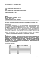 Senatsverwaltung für Inneres und Sport Herrn Abgeordneten Marcel Luthe (FDP) über den Präsidenten des Abgeordnetenhauses von Berlin über Senatskanzlei - G Sen - Antwort auf die Schriftliche Anfrage Nr. 18/17519 vom 15. Januar 2019 über Videoaufzeichnung von Straftaten ----------------------------------------------------------------------------------------------------------------- Im Namen des Senats von Berlin beantworte ich Ihre Schriftliche Anfrage wie folgt: Vorbemerkung: Die Schriftliche Anfrage betrifft zum Teil Sachverhalte, die der Senat nicht aus eige- ner Zuständigkeit und Kenntnis beantworten kann. Er ist gleichwohl bemüht, Ihnen eine Antwort auf Ihre Anfrage zukommen zu lassen und hat daher zum Sachverhalt die Berliner Verkehrsbetriebe (BVG) um Stellungnahme gebeten, die von dort in ei- gener Verantwortung erstellt und dem Senat übermittelt wurde. Die übermittelten Tei- le sind in der nachfolgenden Beantwortung der Fragen entsprechend gekennzeichnet. 1. In wie vielen Fällen haben Berliner Strafverfolgungsbehörden in den Jahren 2012 bis 2018 die Übermittlung von Videodaten im Zusammenhang mit Straftaten bei der BVG erbeten? Zu 1.: Eine erfolgreich umgesetzte Harmonisierung und Optimierung des Datenerfassungs- systems von Videodatenanforderungen führte mit Beginn des Jahres 2015 zur Ver- besserung der Erfassungsmodalitäten. In diesem Zusammenhang wurde ebenfalls entschieden, dass zukünftig ausschließlich durch die BVG eine statistische Aussage zur Anforderung von Videodaten erfolgt. Somit ist eine valide Vergleichbarkeit zu den Jahren vor 2015 nicht gegeben. Die BVG teilt hierzu mit: Jahr Anfrage durch die Polizei 2012 2.856 2013 3.537 2014 4.555 2015 5.466 2016 6.087 2017 5.032 2018 4.697 Seite 1 von 3