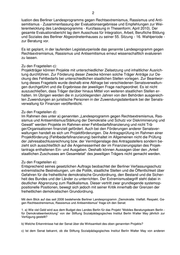 Senatsverwaltung für Justiz, Verbraucherschutz und Antidiskriminierung Herrn Abgeordneten Ronald Gläser (AfD) über den Präsidenten des Abgeordnetenhauses von Berlin über Senatskanzlei - G Sen - Antwort auf die Schriftliche Anfrage Nr. 18/11794 vom 13. Juli 2017 über Kampf gegen Rechts aus Steuermitteln. Teil IX ---------------------------------------------------------------------------------------------------------------------- Im Namen des Senats von Berlin beantworte ich Ihre Schriftliche Anfrage wie folgt: Vorbemerkung Zu den Frageteilen a): Die in der Schriftlichen Anfrage genannten Träger erhalten unter Berücksichtigung der Grundsätze der Wirtschaftlichkeit und Sparsamkeit jeweils eine finanzielle Unterstützung als Zuwendung im Rahmen einer Fehlbedarfsfinanzierung gem. § 44 Landeshaushalts- ordnung (LHO). Die zur Verfügung stehenden Mittel sind im Haushaltsplan des Landes Berlin unter Kapitel 0601 (wurde bislang bei Kapitel 0901 nachgewiesen), Titel 684 06 Nr. 4 („Ausgaben im Rahmen des Landesprogramms gegen Rechtsextremismus, Ras- sismus und Antisemitismus/Stärkung der Demokratie und Schutz vor Diskriminierung und Gewalt.“) aufgeführt. Die jeweiligen Fördersummen für das Jahr 2017 (Stand: Juni 2017) sind den einzelnen Fragen nachgestellt. Zu den Frageteilen b): Im Rahmen der Zuwendungsvergabe werden für jede Förderung Projektziele im Zuwen- dungsbescheid verbindlich festgelegt. Der Projektträger ist verpflichtet im Rahmen des Nachweises der Verwendung über den jeweiligen Zielerreichungsgrad zu berichten. Die Bewilligungsstelle prüft im Rahmen der Verwendungsnachweisprüfung den Sachbericht und die Zielerreichung. Darüber hinaus finden regelmäßig Gespräche der Bewilligungs- stelle mit den Projektträgern über die inhaltliche Arbeit und den Fortgang der Projektar- beit statt, so dass die Bewilligungsstelle über den Stand der Projektarbeit und eventuell notwendige Änderungen oder Anpassungen informiert ist und im Sinne der Förderziele nachsteuern kann. Außerdem wurden das Gesamtprogramm und die Arbeitsansätze ein- zelner Projekte im Jahr 2010 extern wissenschaftlich evaluiert. Die Evaluation hat erge- ben, dass sich „die geförderten Themenbereiche und längerfristigen Leitprojekte (…) ins- gesamt bewährt“ haben und die Grundausrichtung des Programms „eine Fülle wissen- schaftlich bestätigter Evidenzen für sich reklamieren“ kann. (Abschlussbericht zur Eva-