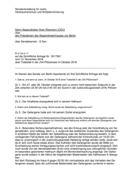 Drucksache 18 / 17 061 Schriftliche Anfrage 18. Wahlperiode Schriftliche Anfrage des Abgeordneten Sven Rissmann (CDU) vom 13. November 2018 (Eingang beim Abgeordnetenhaus am 15. November 2018) zum Thema: Todesfall in der JVA Plötzensee im Oktober 2018 und Antwort vom 28. November 2018 (Eingang beim Abgeordnetenhaus am 05. Dez. 2018) Die Drucksachen des Abgeordnetenhauses sind bei der Kulturbuch-Verlag GmbH zu beziehen. Hausanschrift: Sprosserweg 3, 12351 Berlin-Buckow · Postanschrift: Postfach 47 04 49, 12313 Berlin, Telefon: 6 61 84 84; Telefax: 6 61 78 28.
